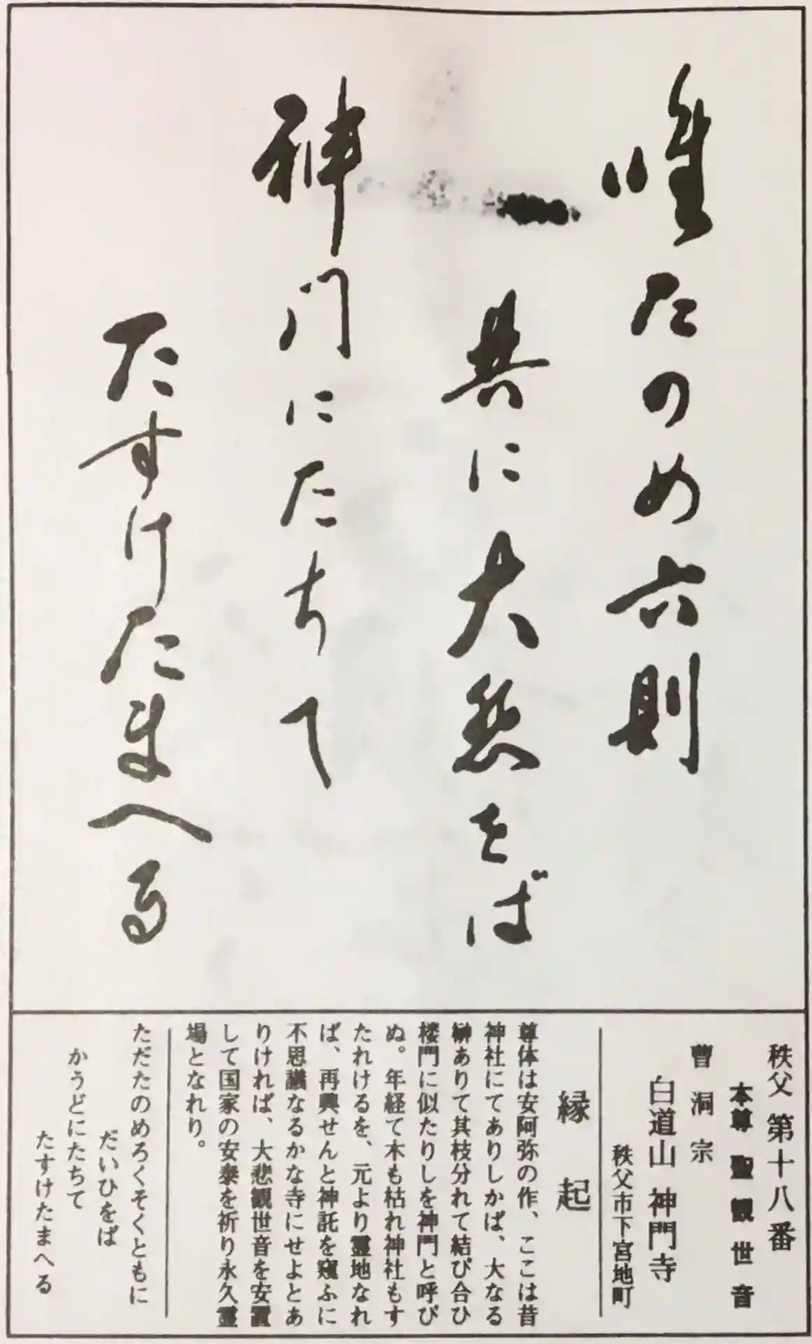 御詠歌 ただたのめ 六則ともに 大悲をば 神門にたちて たすけ…
