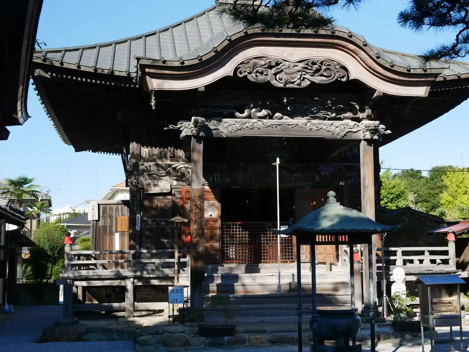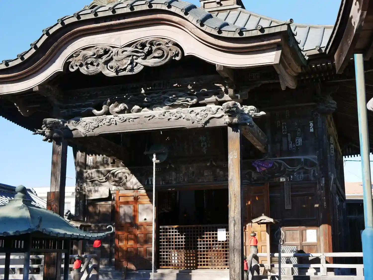 よく見ると、軒下の彫刻はかなり豪華。江戸末期に織物で富を得た秩父の豪商が喜捨したのかしら。