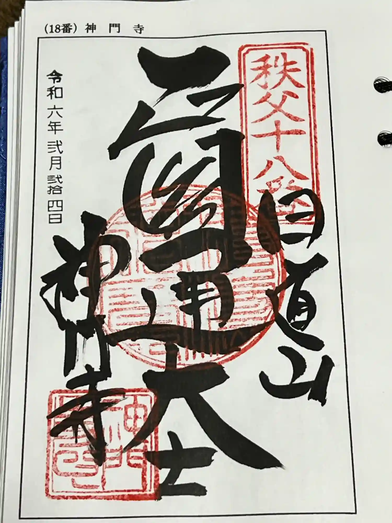 秩父札所十八番神門寺様の御朱印を頂きました。ご本尊様が幸せになれますように、ご本尊様に感謝しており…