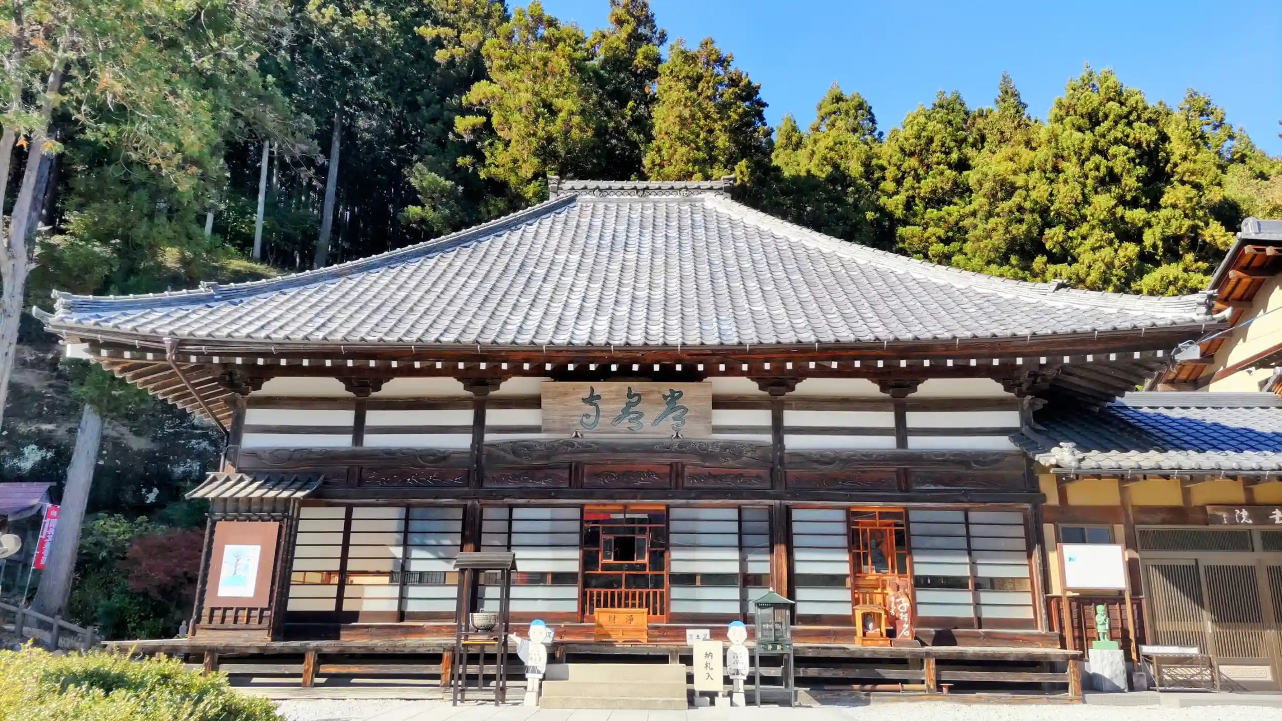 入り口には左右に仁王さんがいらっしゃって正面にすらっとした本堂があります。観音堂は左手少し上がったところにあり、本堂とは対照的に勢いを感じる建物になっていました。