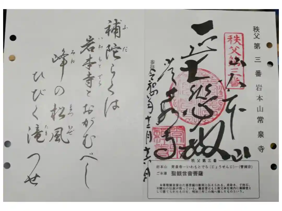 岩本山 常泉寺(じょうせんじ, 曹洞宗, 1234年) 覚了が開山, 本尊は聖観世音菩薩, 秩父三…