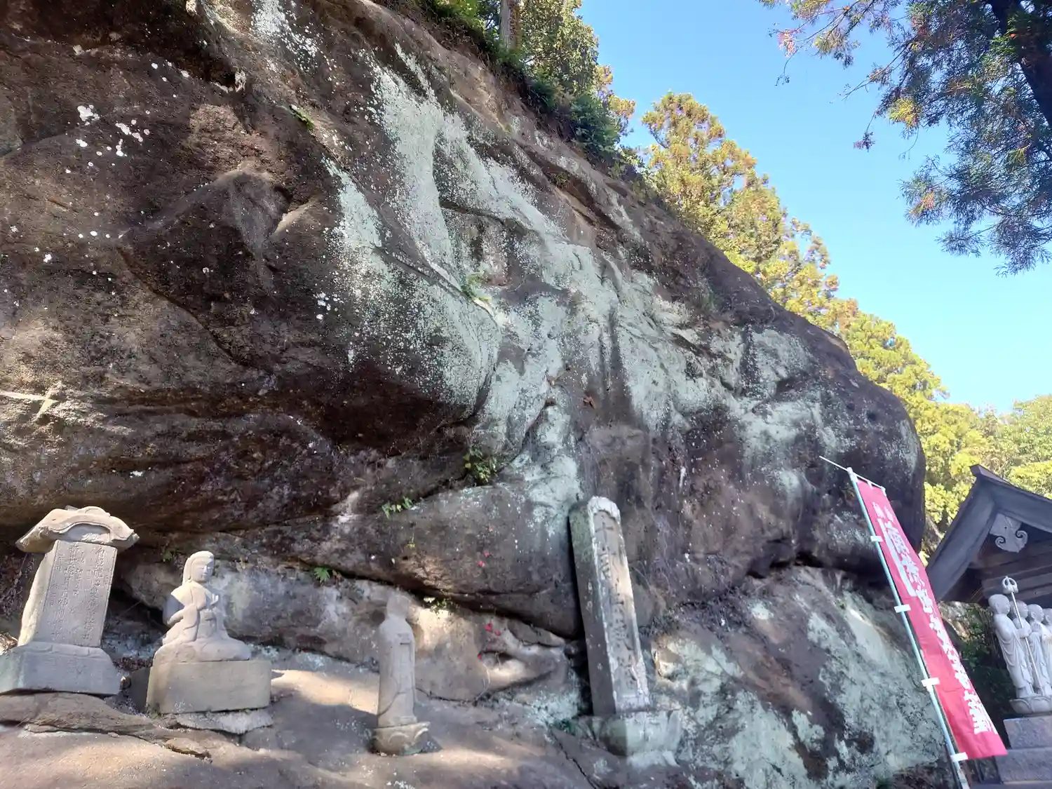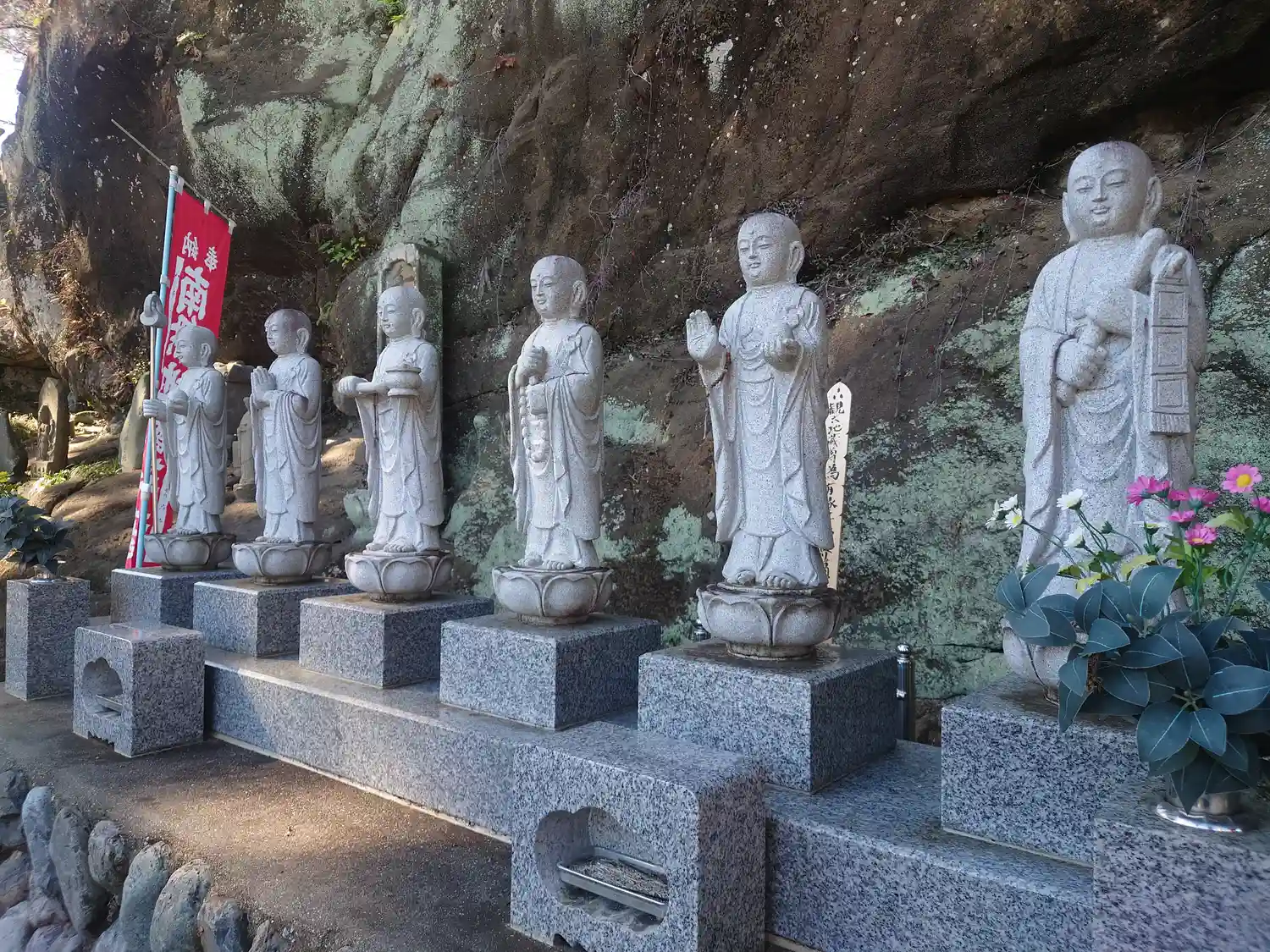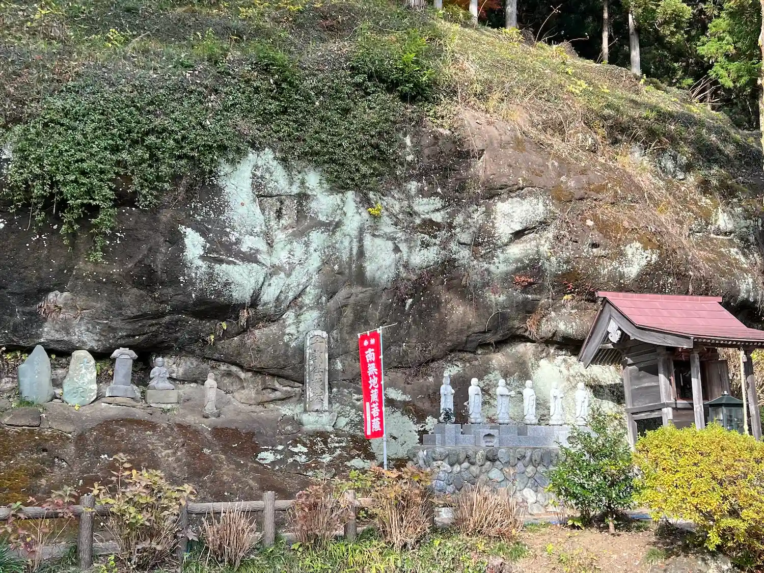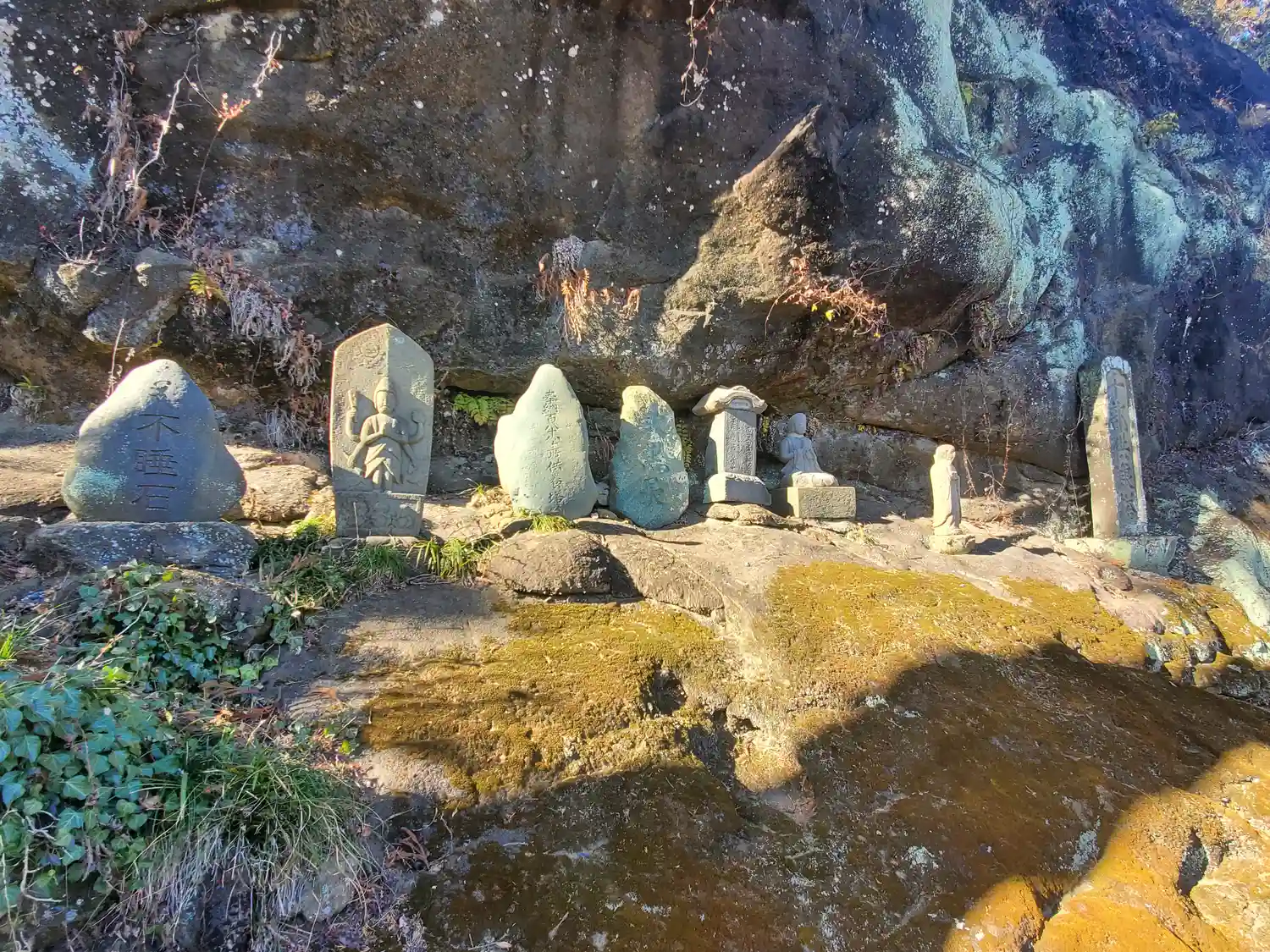六地蔵の後方、やや高い岩肌にある石碑群。