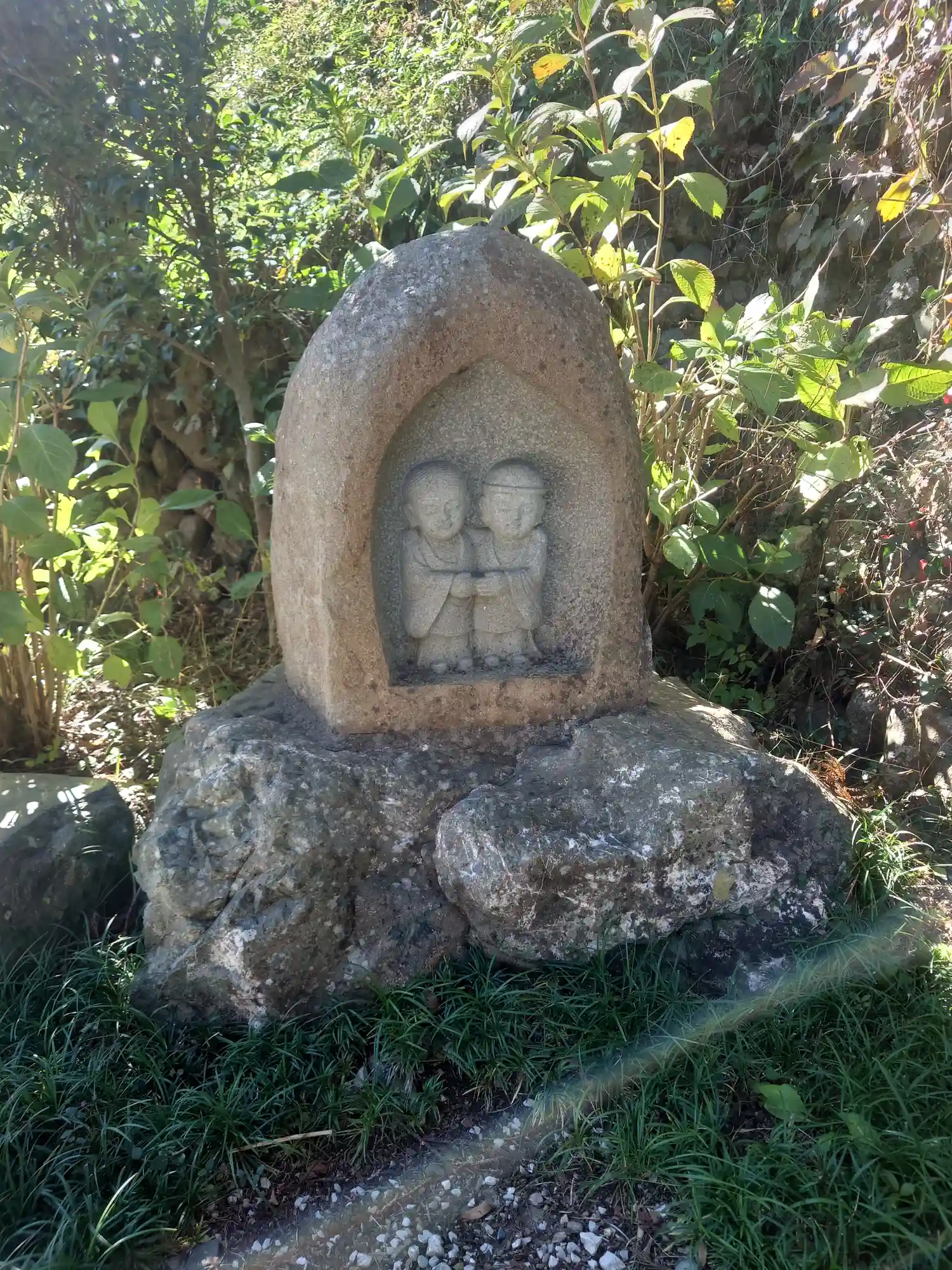 本堂正面左側に置いてある<なでぼとけ>。