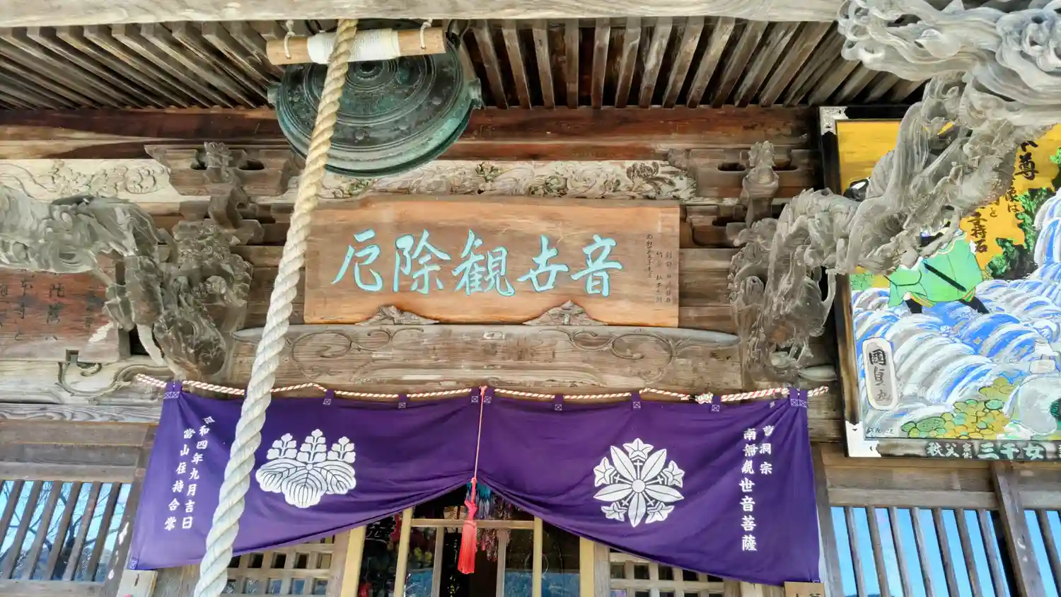 <観音堂>正面。扁額には「厄除観世音」の文字。小窓から観音像がしっかり見える。(o^―^o)