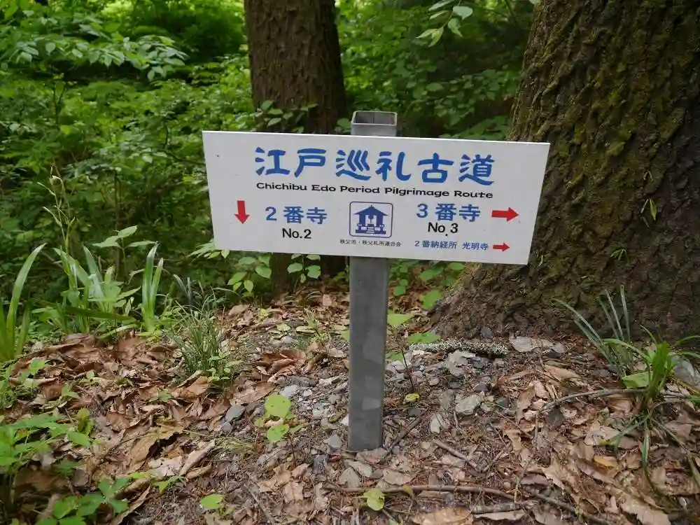 秩父霊場は札所の順路の標識が整備されているので、歩いての巡礼には助かります。江戸時代の石の道しるべもあちこちにあります。ただし、この真福寺は途中から傾斜がきつい山の中に入ります。秩父霊場は三十番の辺りから山の中の霊場を訪ね歩く難所続きになるのですが、二番の真福寺はそれに次ぐ“準難所”かもしれません。