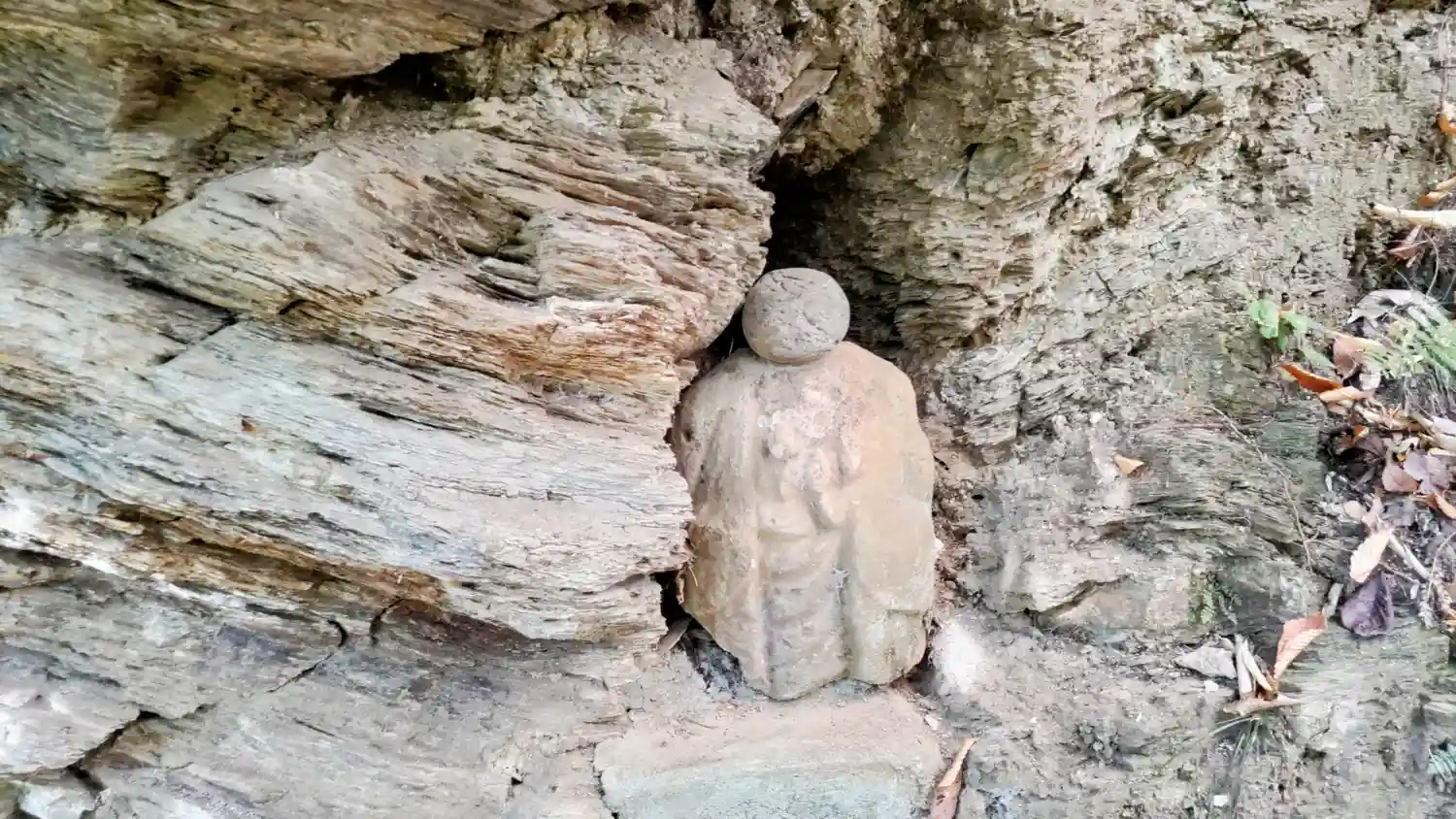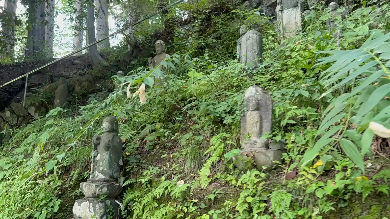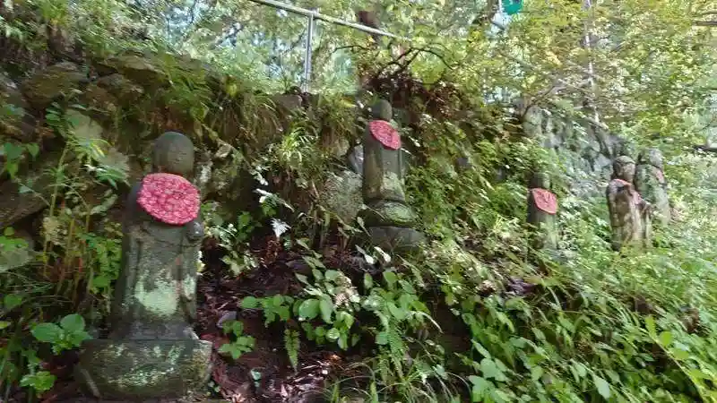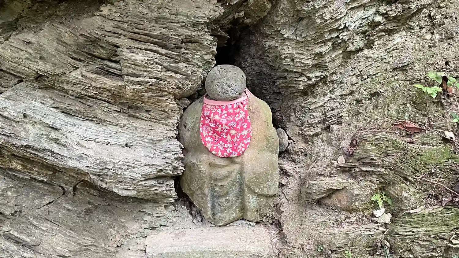 本堂へ向かう崖沿いに地蔵様が祀られています。
