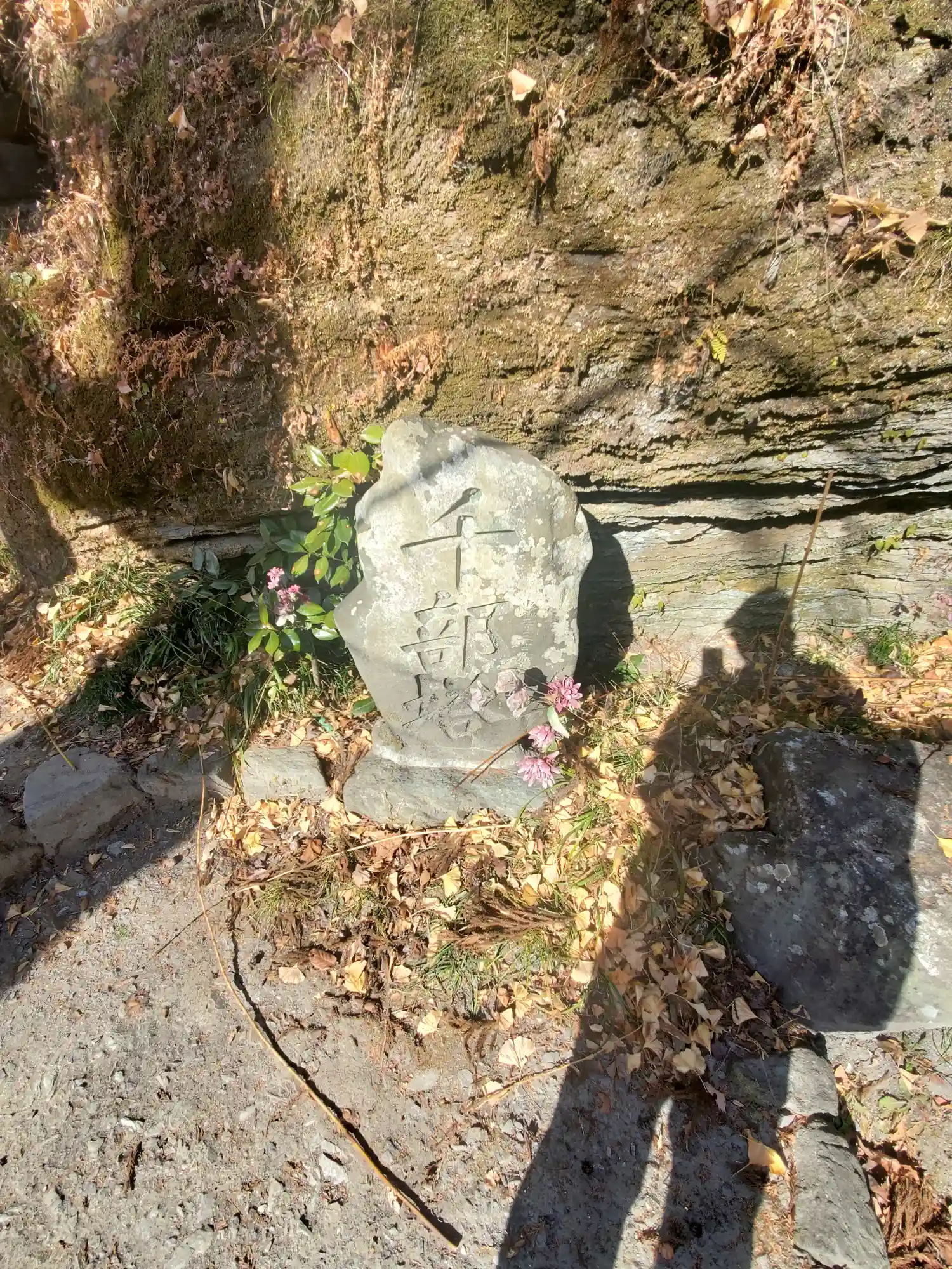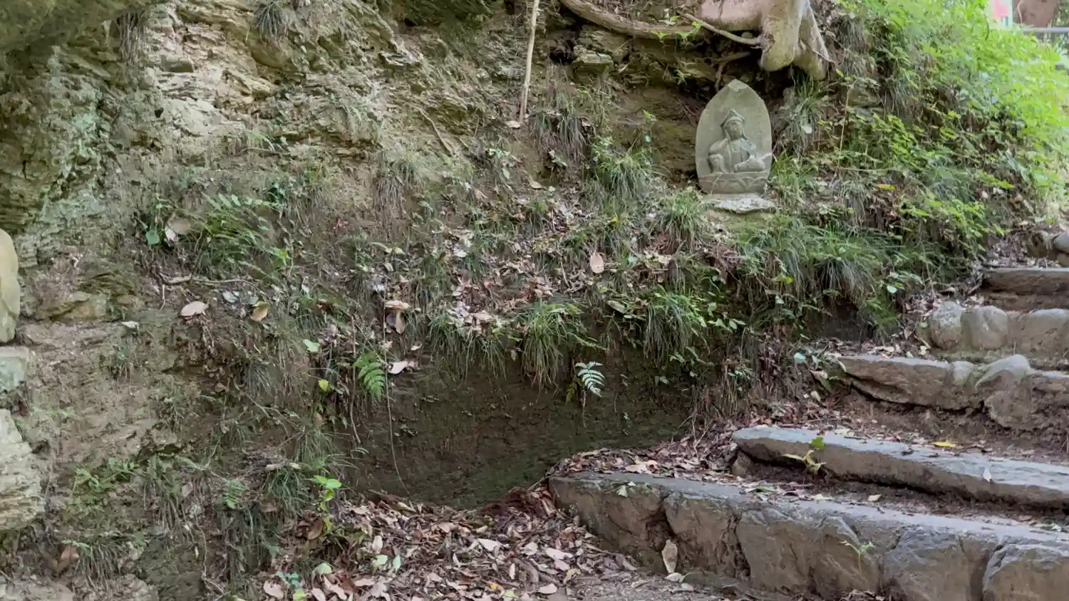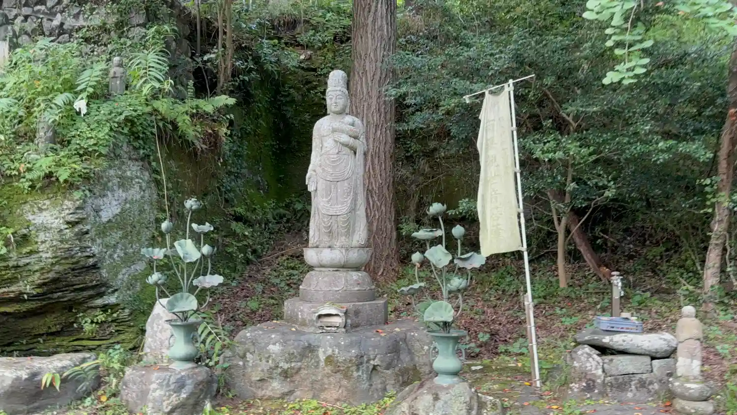 本堂へ向かう崖沿いに地蔵様が祀られています。