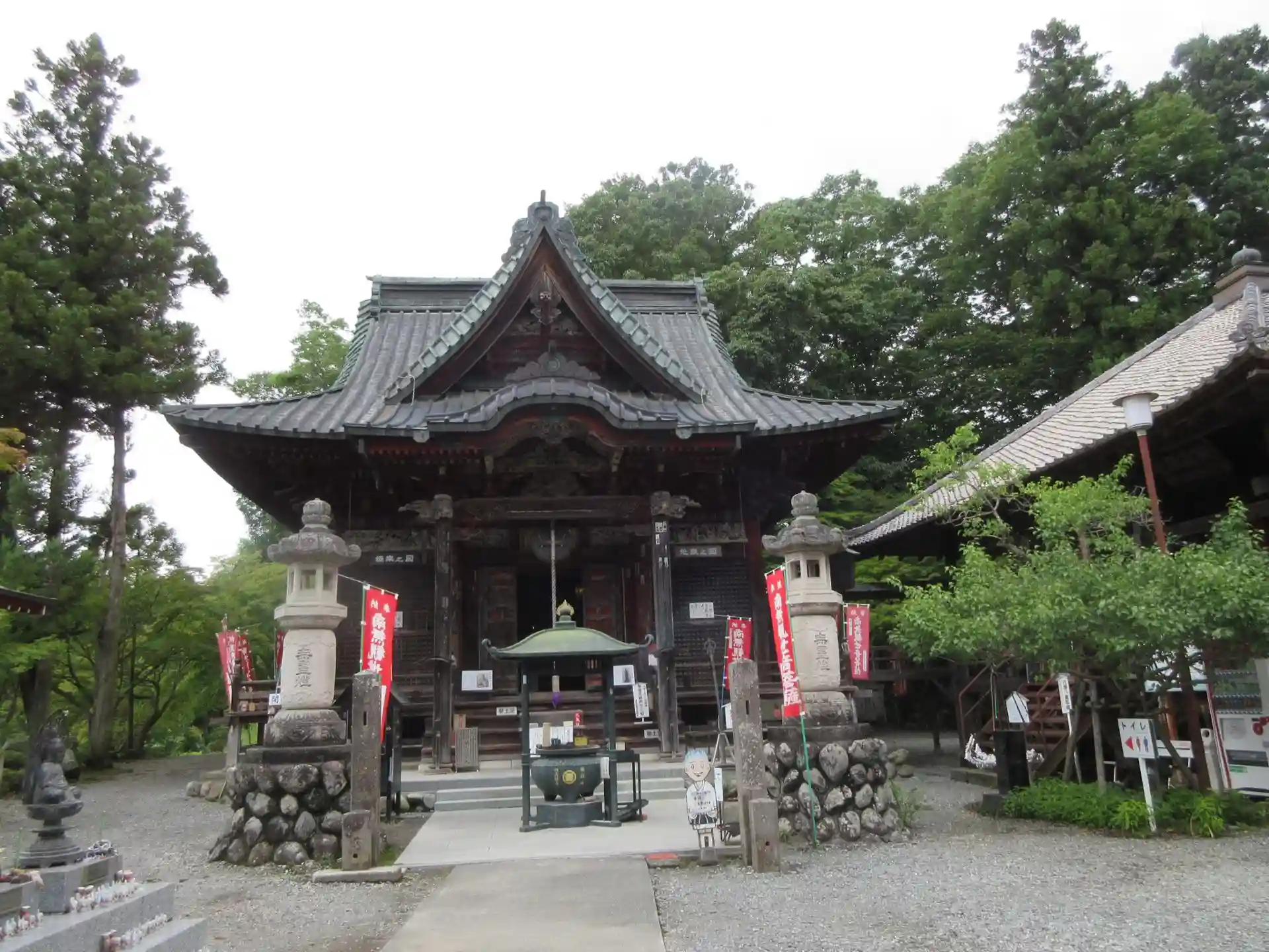 秩父観音霊場第1番札所、誦経山ずきょうざん四蔓部寺しまぶじ。曹洞宗。ご本尊は聖観世音菩薩。行基菩薩開基。関東三大施食が行われる。秩父巡礼グッズはこちらで買い揃えられます。お話し好きな住職さんで、絵も趣味で描いていらっしゃるとか。「似顔描いてあげるねー」と墨で描いていただきました。