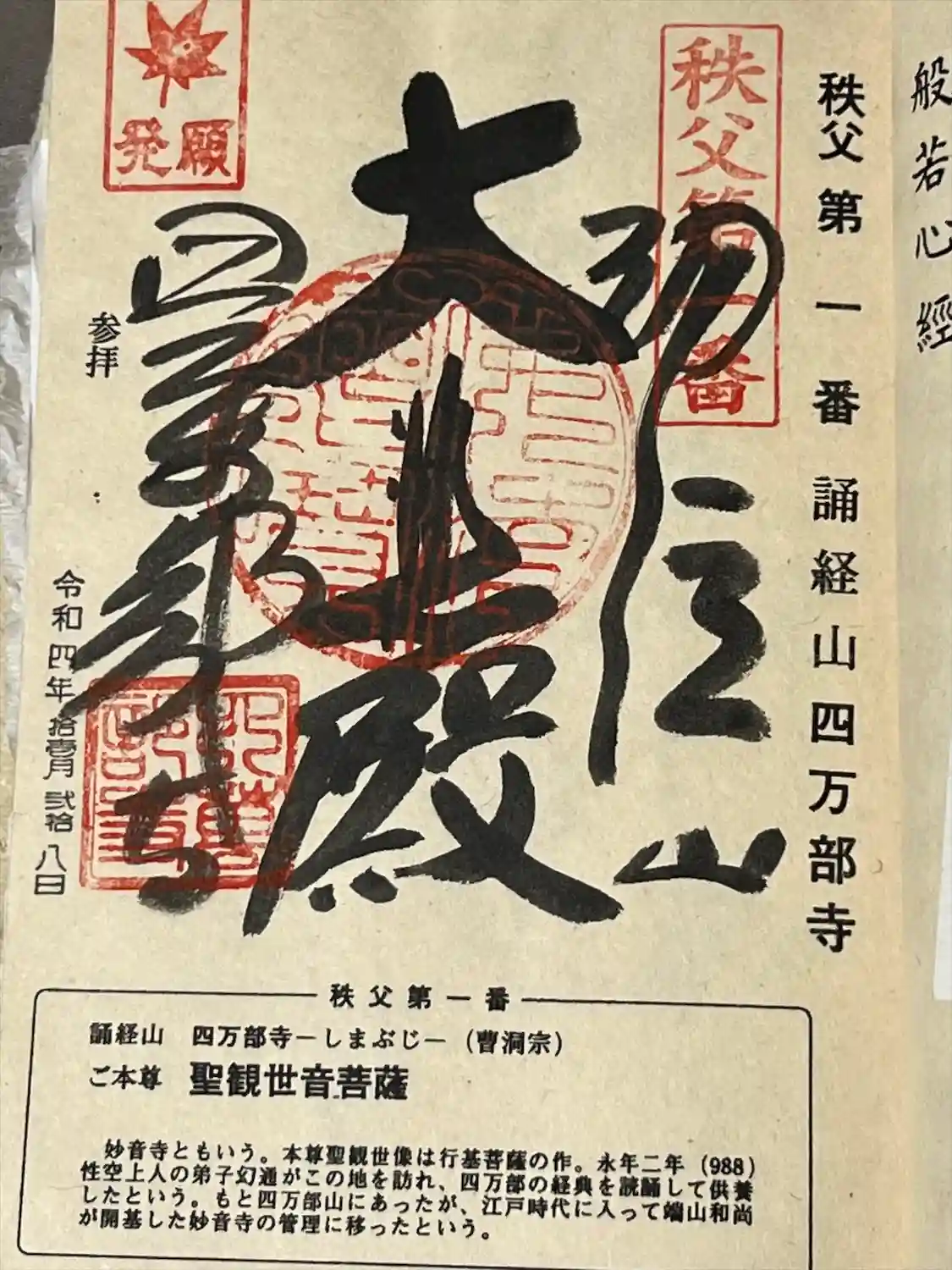 楽しみ方秩父札所1番 四萬部寺のお参りの記録(1回目)