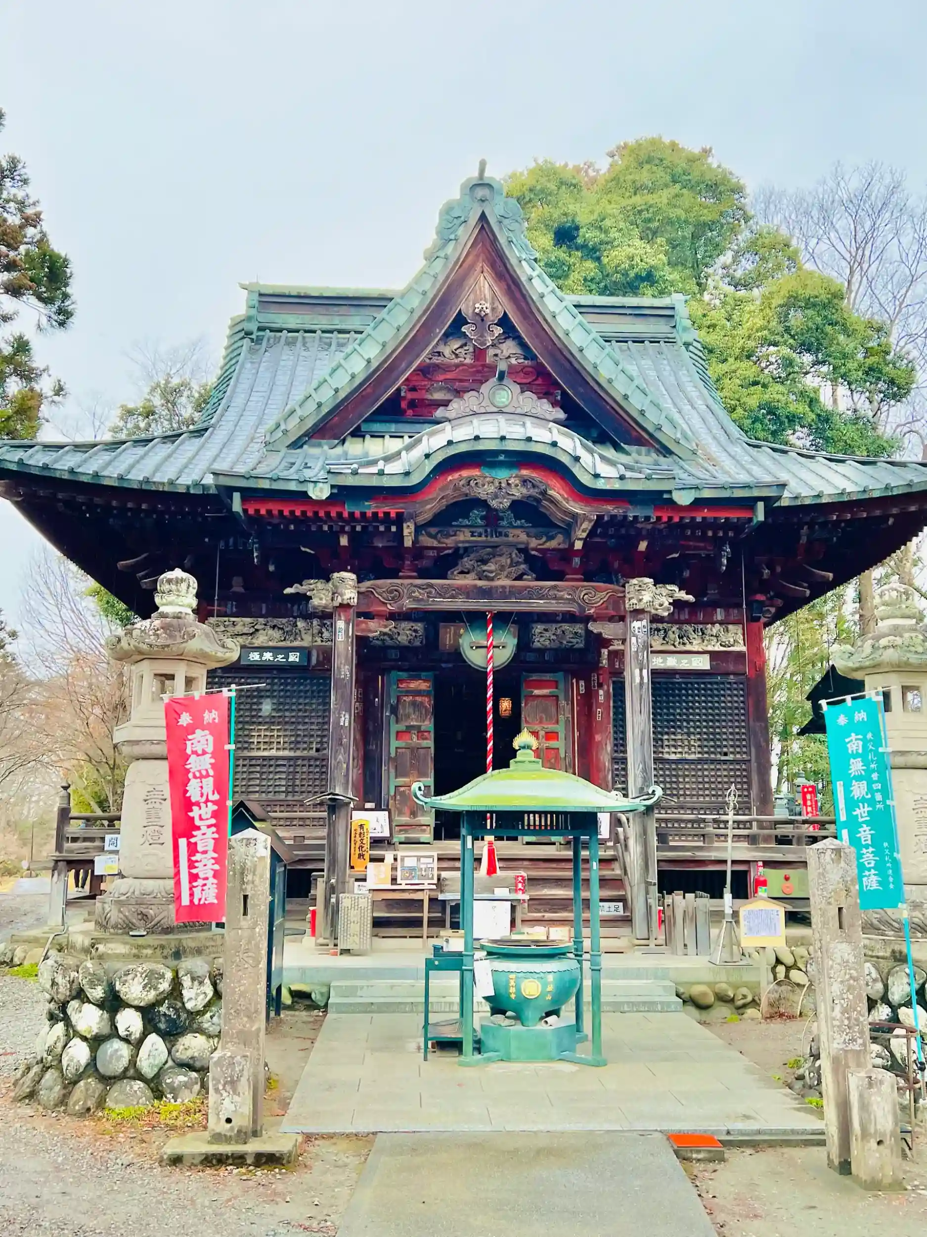 埼玉県 秩父市 栃谷 に境内を構える、四萬部寺 (しまぶじ)、2024 に日本百観音 秩父札所三十四巡礼にて参拝致しました、当方は 道の駅 全国制覇者で、全国の寺社、霊場を参拝してますが、秩父地方の方々の人柄の良さ 優しさ、食べ物 四季折々の景観 が素晴らしい地方でした、どの様な寺院か引用を用いて調べて見ました、山号は 誦経山、寺号は 四萬部寺、宗旨 宗派は 曹洞宗、ご本尊は 聖観世音菩薩、秩父札所三十四観音霊場 第一番札所、札所ご本尊は 聖観世音菩薩 日本百観音の一つ、奈良の高僧で 大仏造立の責任者でもあった、行基(ぎょうき)の作、四萬部寺は、「妙音寺」とも言われています。永年2年(988年)に 性空上人の弟子・幻通が、性空上人の命令でこの地を訪れた際、四万部の経典を読経し、供養のための経塚を築いたことが、このお寺のはじまりとされ『四萬部寺』の由来にもなっています。性空上人は、秩父札所三十四ヶ所開創の伝説にも登場する平安時代の高僧で。有名な『徒然草』(吉田兼好)にも触れられています、秩父霊場で唯一の埼玉県指定有形文化財にもなっている 本堂は、元禄10年(1697年)に創建され、方三間・唐破風様流れ向拝付・正面千鳥破風付・銅瓦瓦葺入母屋造り・朱塗りに金箔が施された本堂は、秩父札所巡りの出発地点にふさわしい荘厳なイメージを持っています。また、本堂の正面の欄間部分にある「地獄之図」・「極楽之図」の彫刻も見応えがあります
