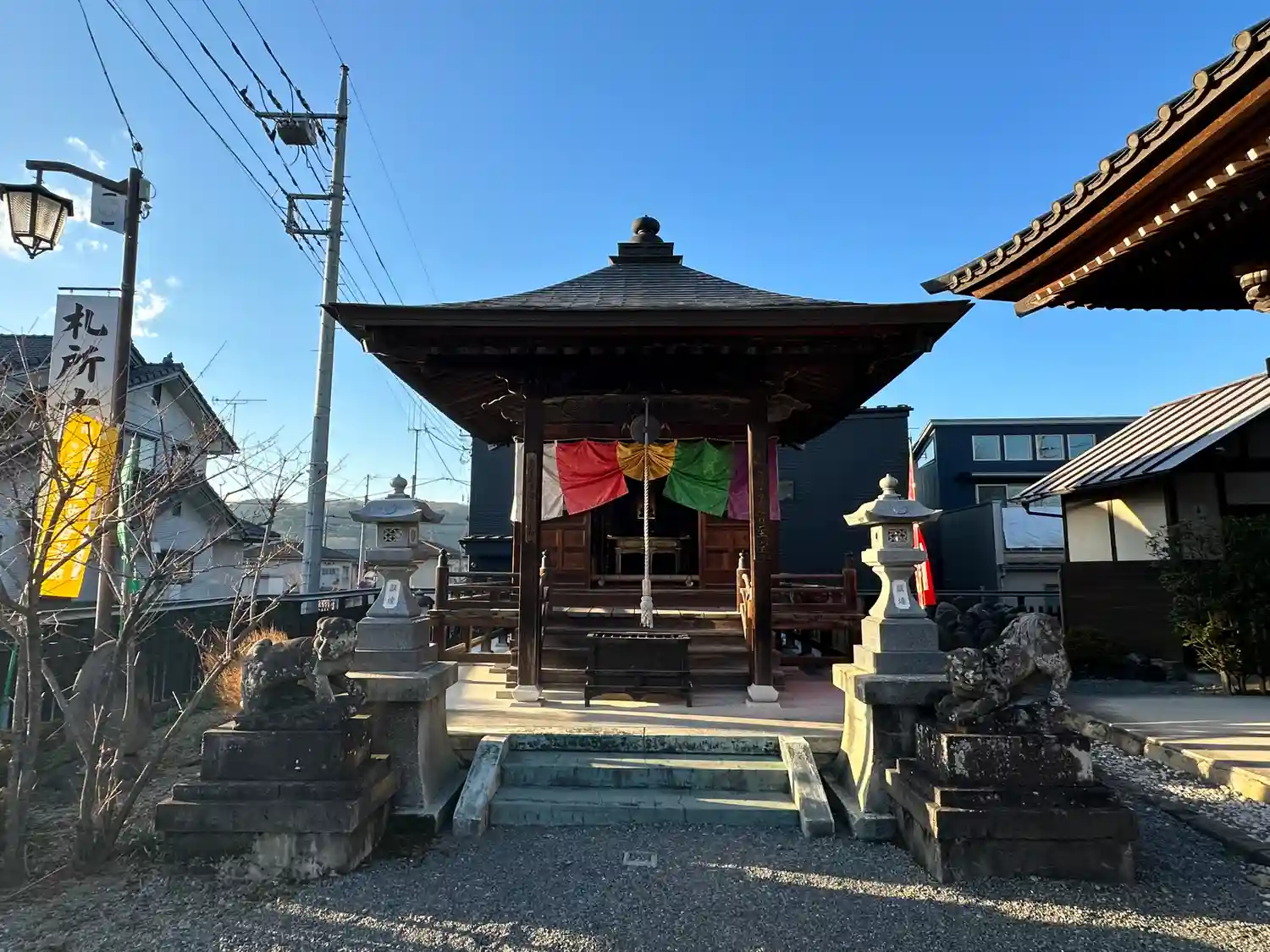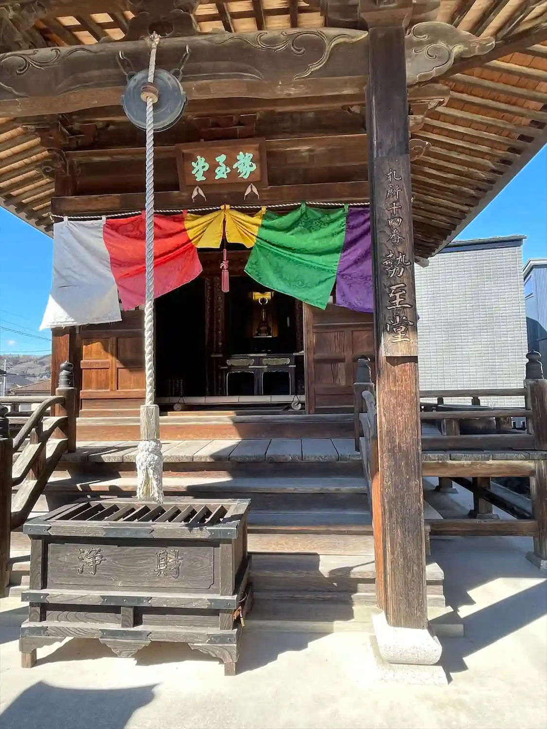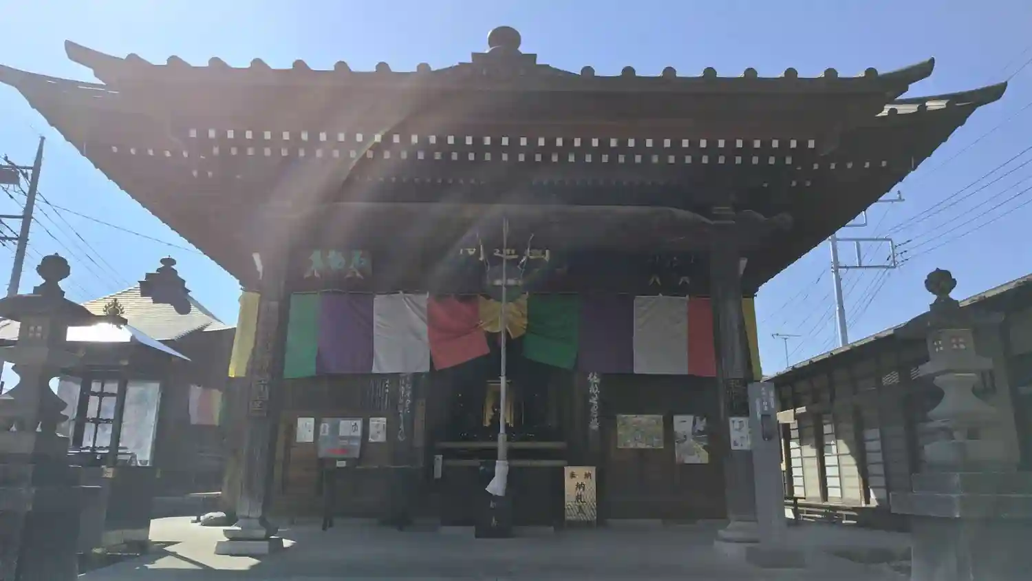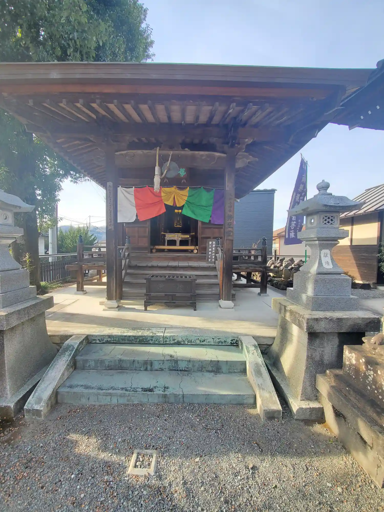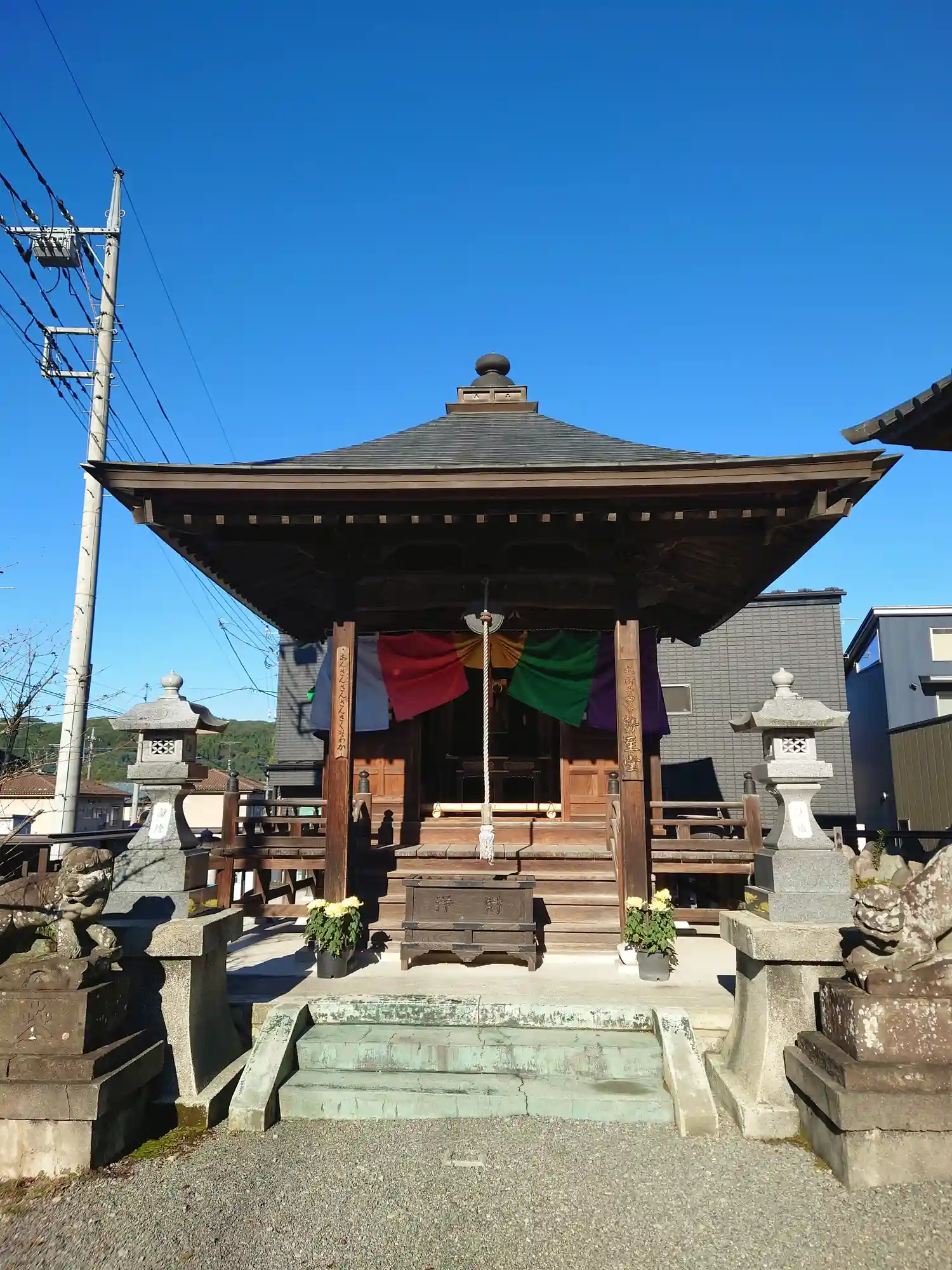 <勢至堂>正面。ここにもちゃんと五色の寺院幕。