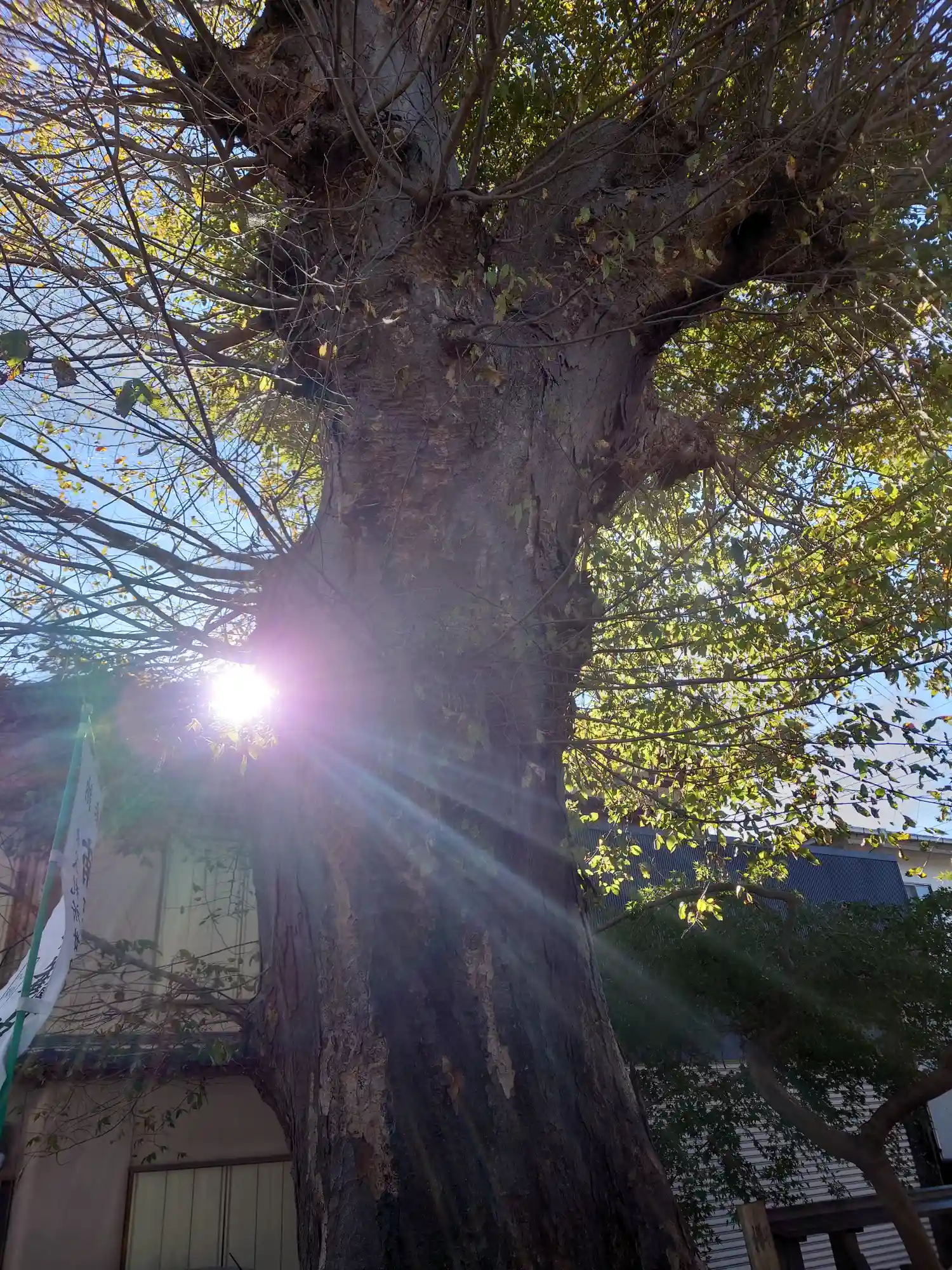 境内の外から、欅の巨木。