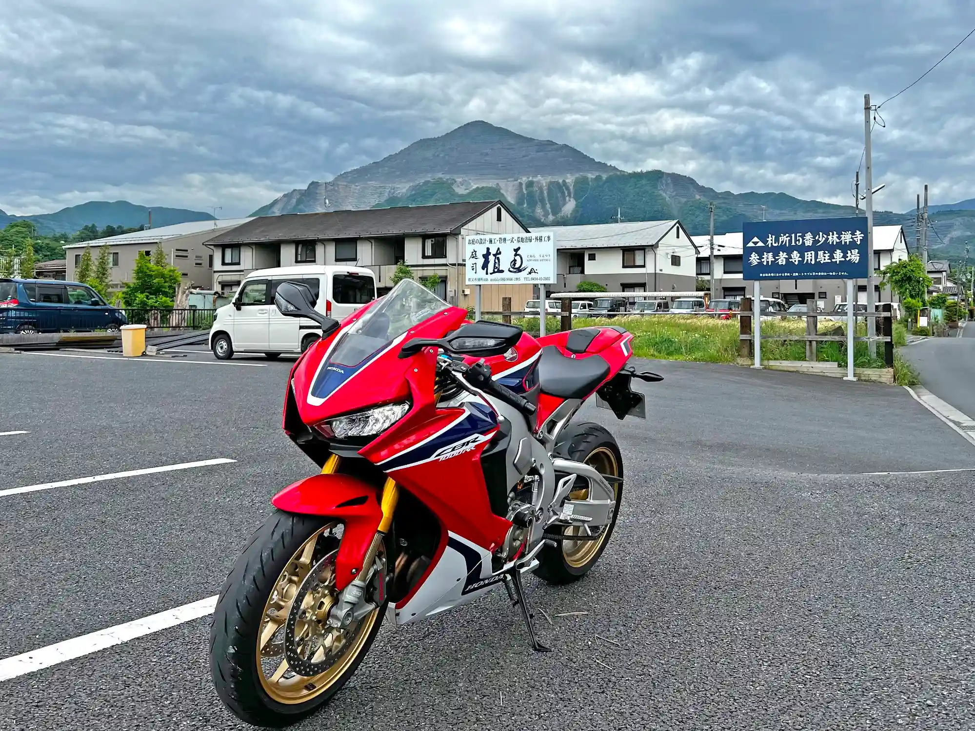 最後に、境内の東側、道を隔てたところにある当寺の参拝者専用駐車場。後ろには秩父のシンボル<武甲山>。(^▽^)/