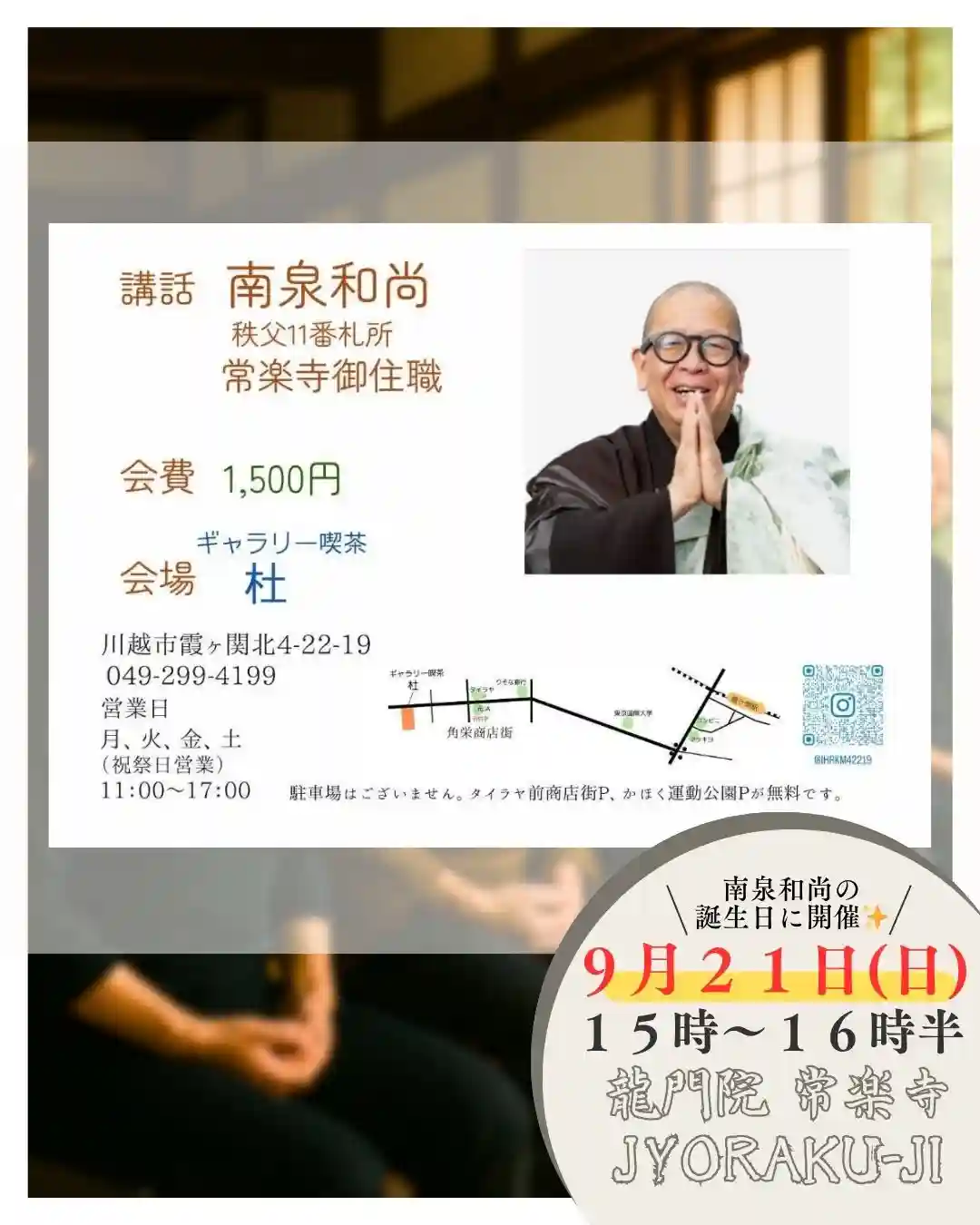 日にち:9月21日(日)🎉南泉和尚の誕生日🎉