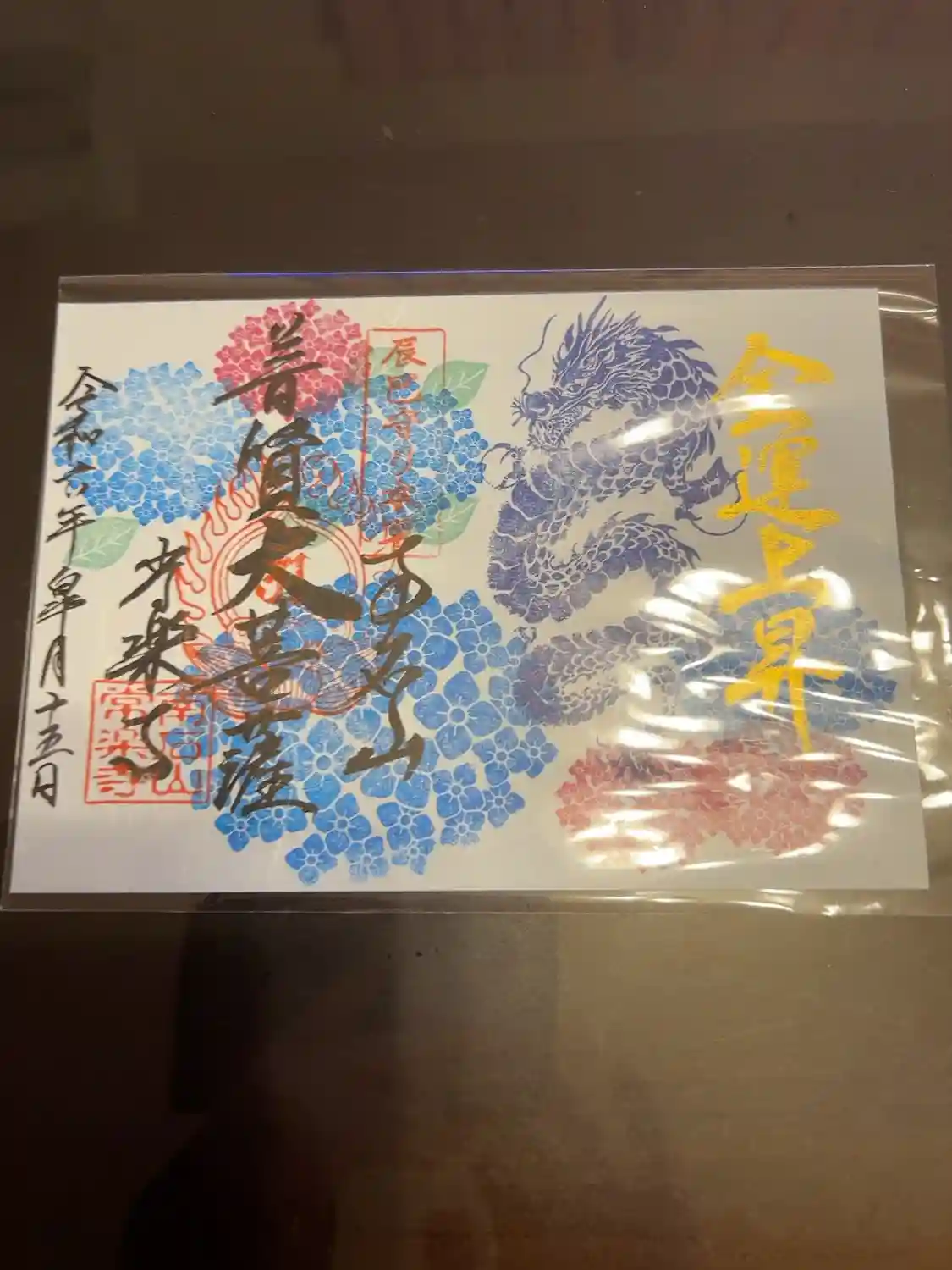 御朱印を読経し拝みました、辰年の龍と普賢菩薩様、ましてや青系です😂南無釈迦牟尼佛🙏オン.サンマヤ.サトバン真言も唱えました😌