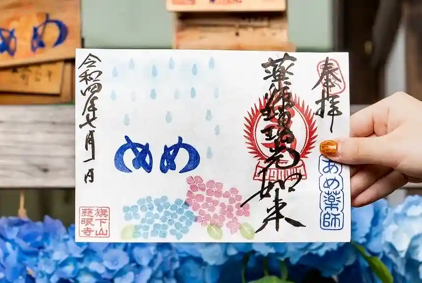 ☂️夏限定めめ御朱印「紫陽花に雨」