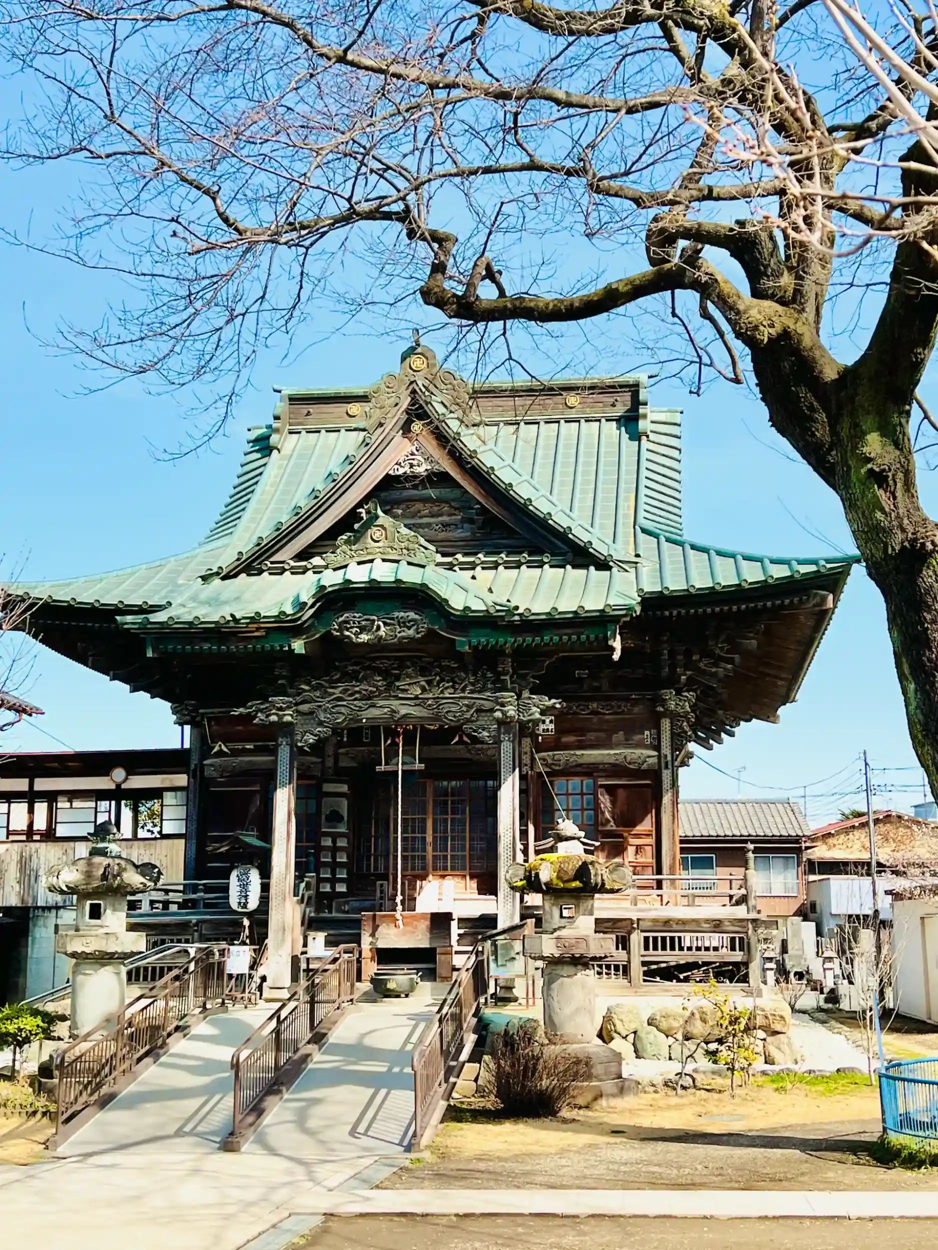 一方、近年の研究では、慈眼寺の旧観音堂が崖の下の土地に建っていたことから、崖の下を意味する“はけの下”と呼ばれるようになったとされる説もあり、“はけの下”にあった旧観音堂は、江戸時代の寛文年間(1661年~1673年)に現在の境内に移したとされています。本堂は、明治11年(1878年)の秩父大火で焼失してしまいましたが、明治34年(1901年)に再建されました。入母屋造の正面に千鳥破風が付き、繊細な彫刻が施された本堂は、札所一番・四萬部寺の本堂を模して再建されたものといいます。西国三十三ヶ所、坂東三十三ヶ所とともに日本百番観音に数えられており、