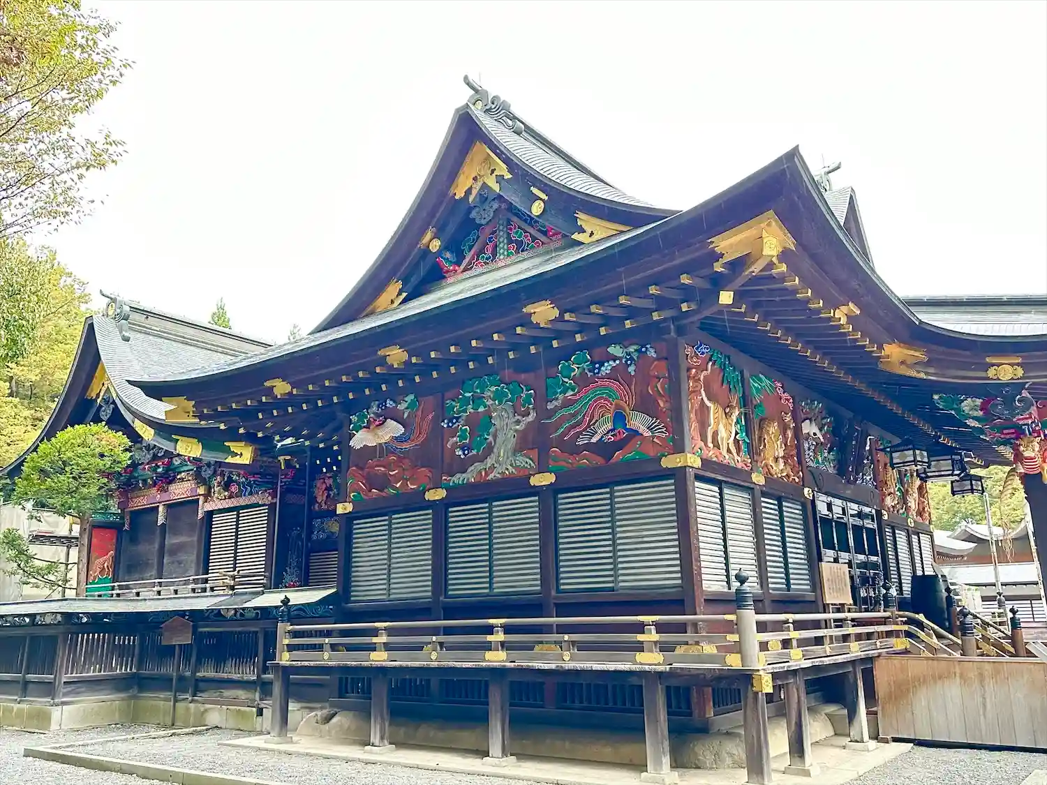 秩父総鎮守。社殿は戦国時代に消失したものを1592年徳川家康が大旦那として再建。極彩色の彫刻が周囲に巡らされた豪華な造りです。