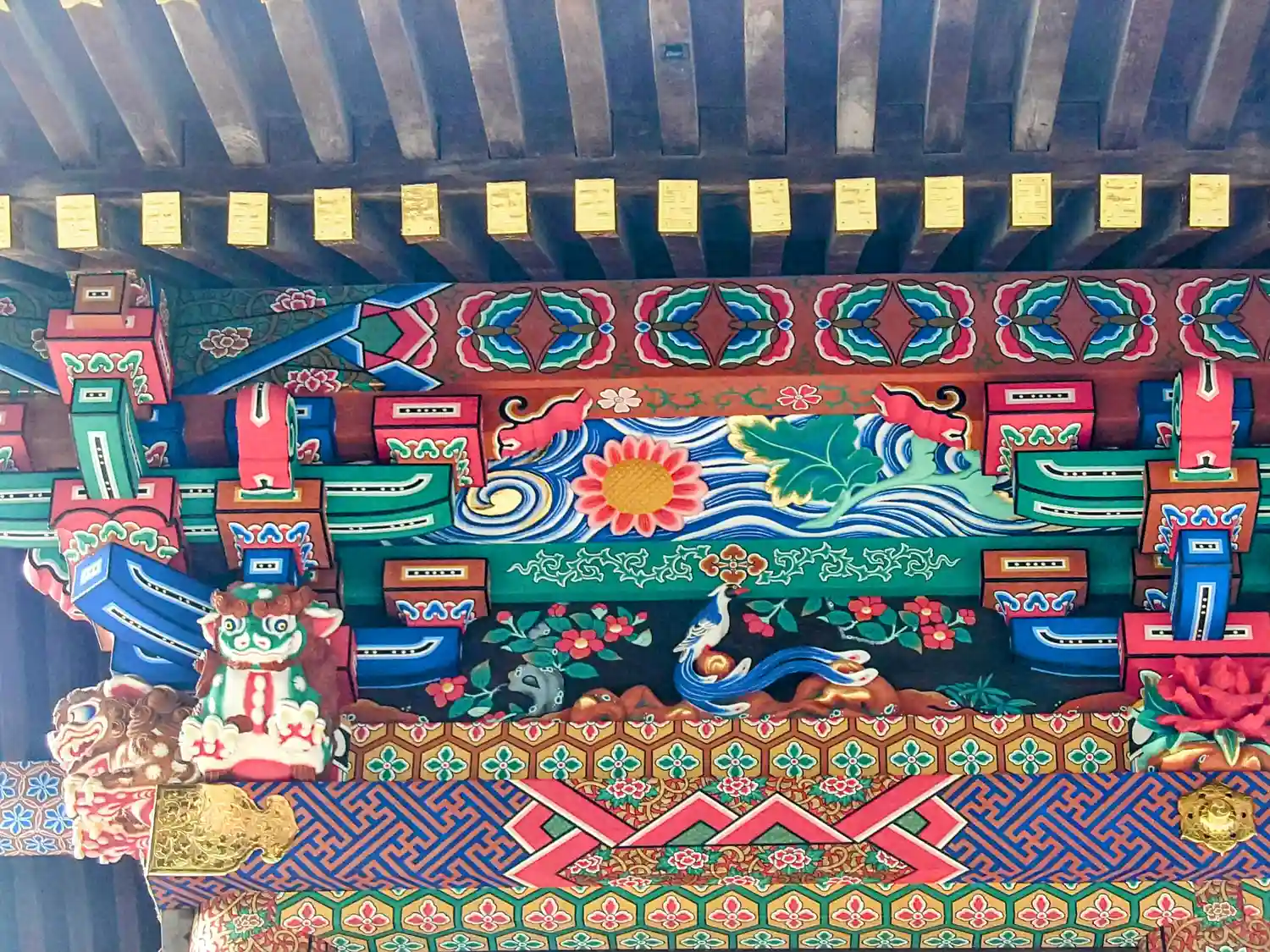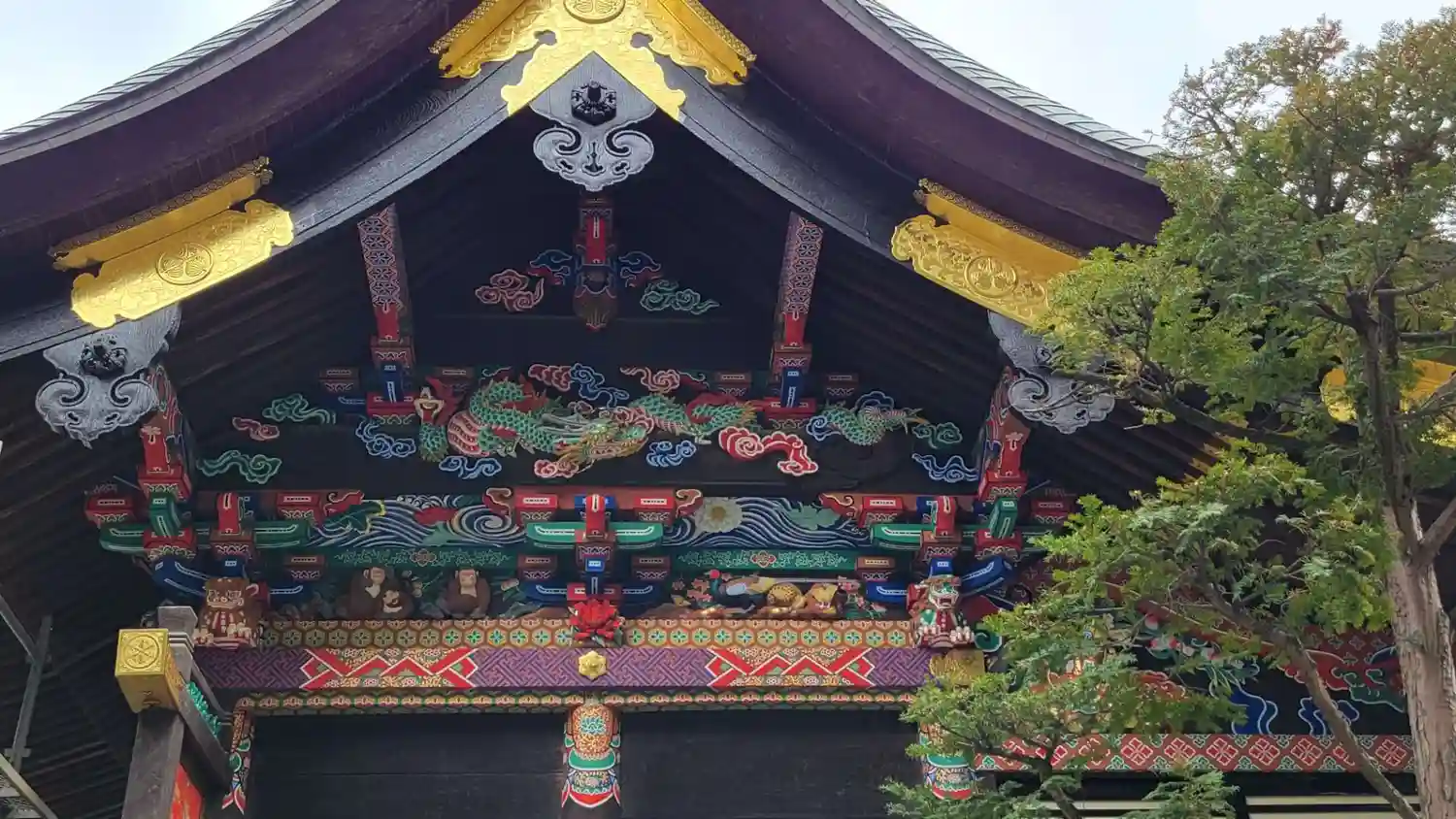 本殿が改修工事中で、子育ての虎は見れませんでしたが、鮮やかな色合いがキレイでした✨