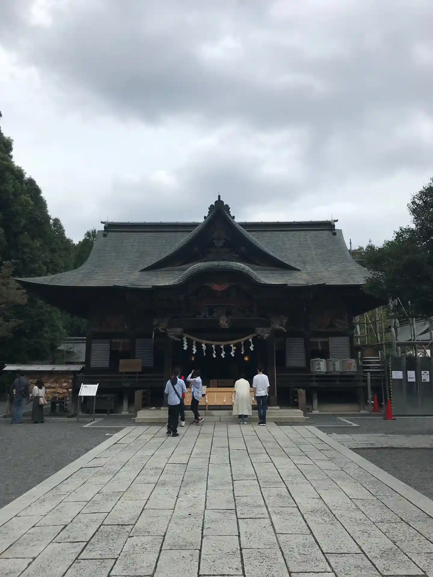 拝殿は改修工事中。