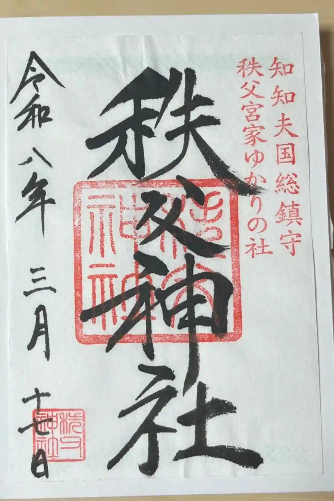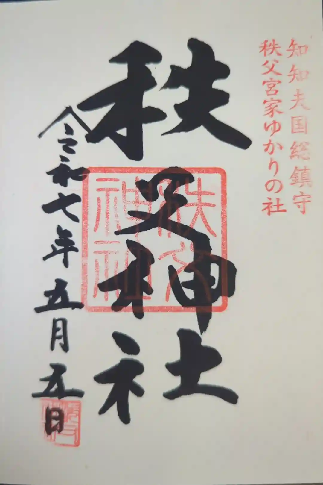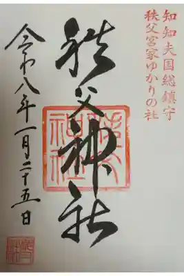 右上には『知知夫国総鎮守』、真ん中には『秩父神社』の印が押されています。 | |||