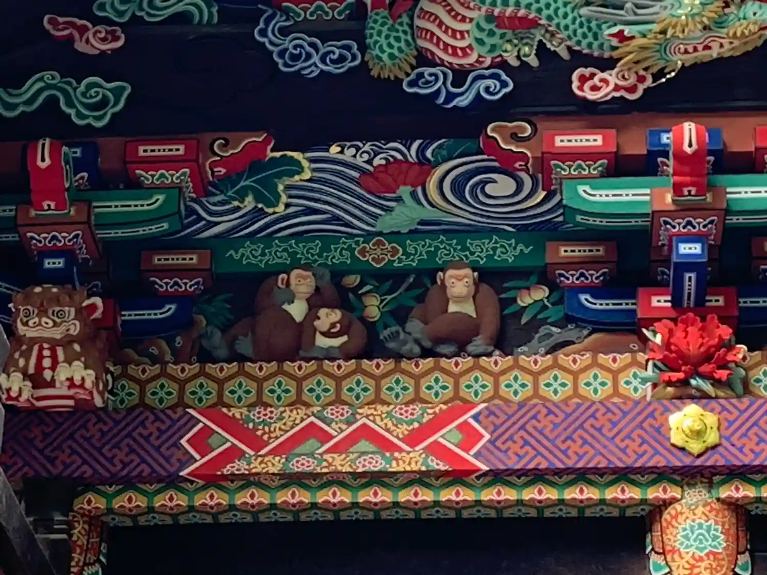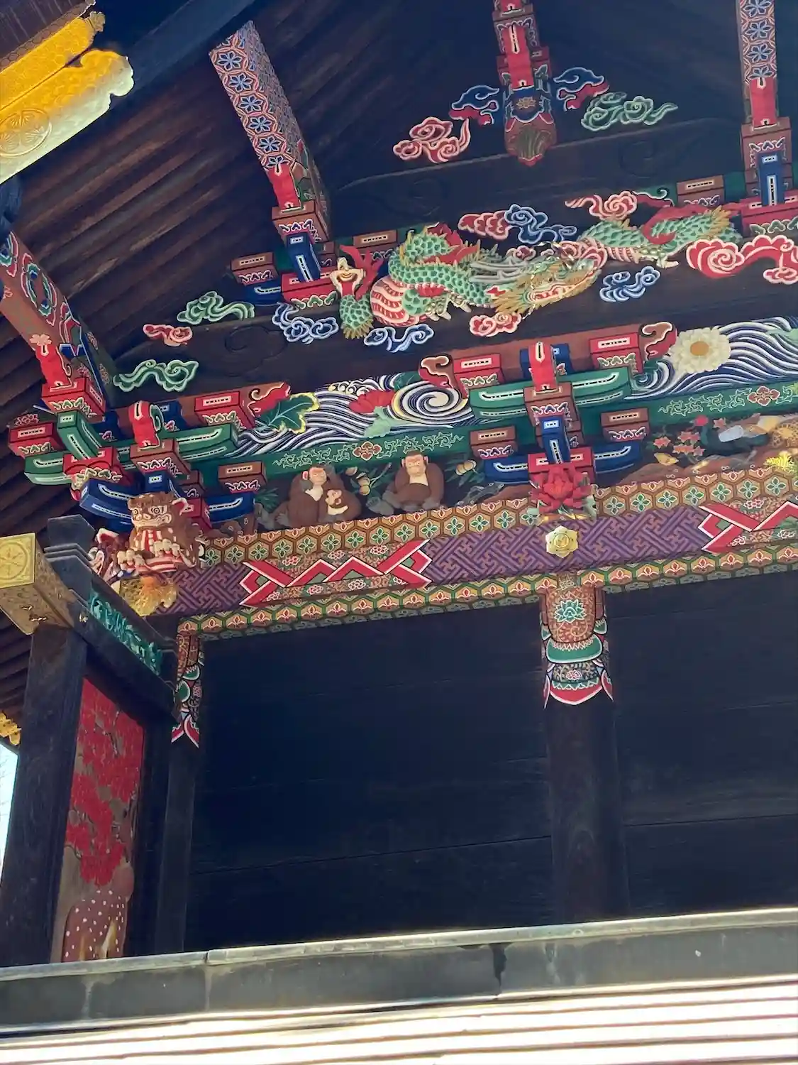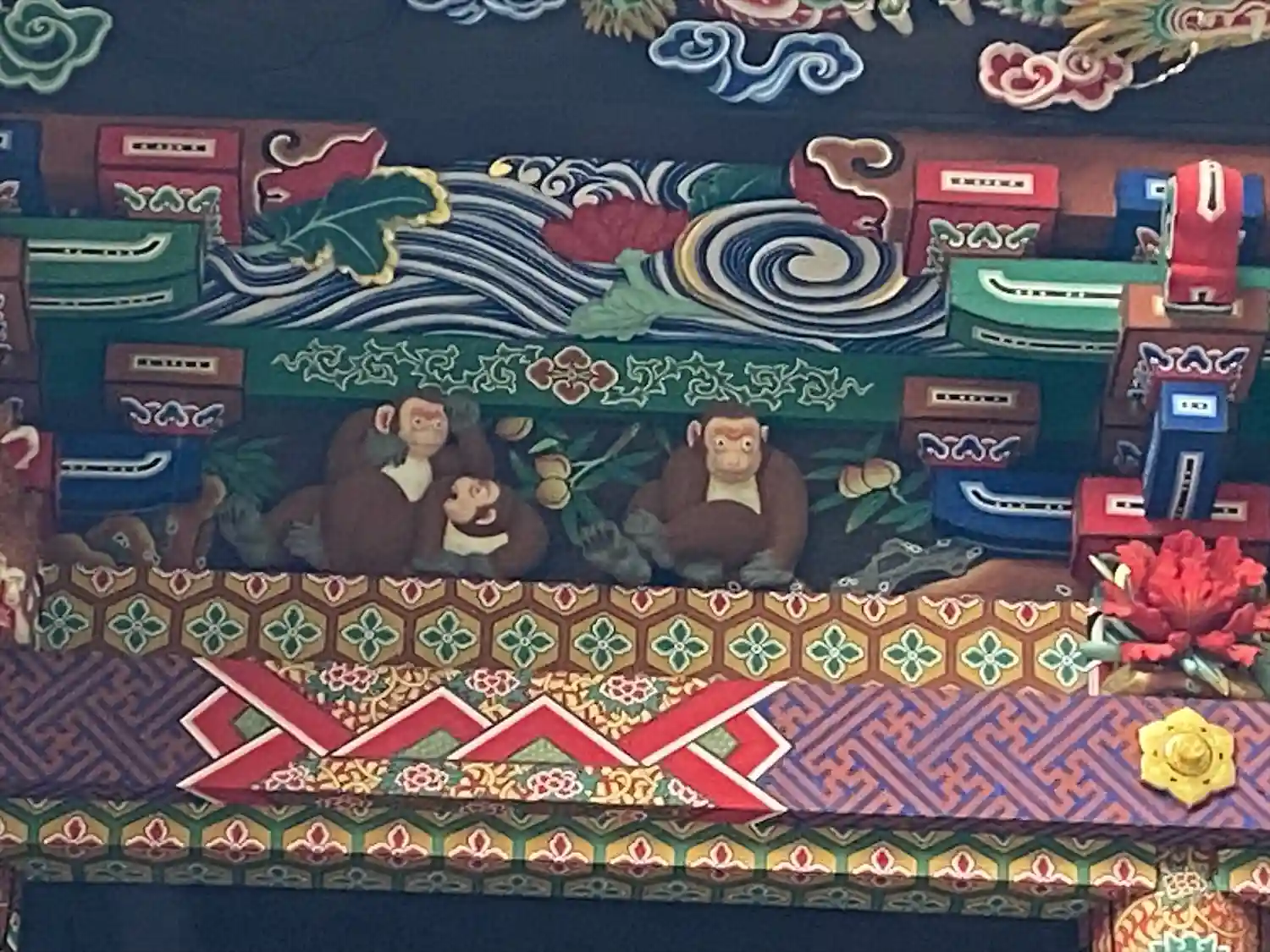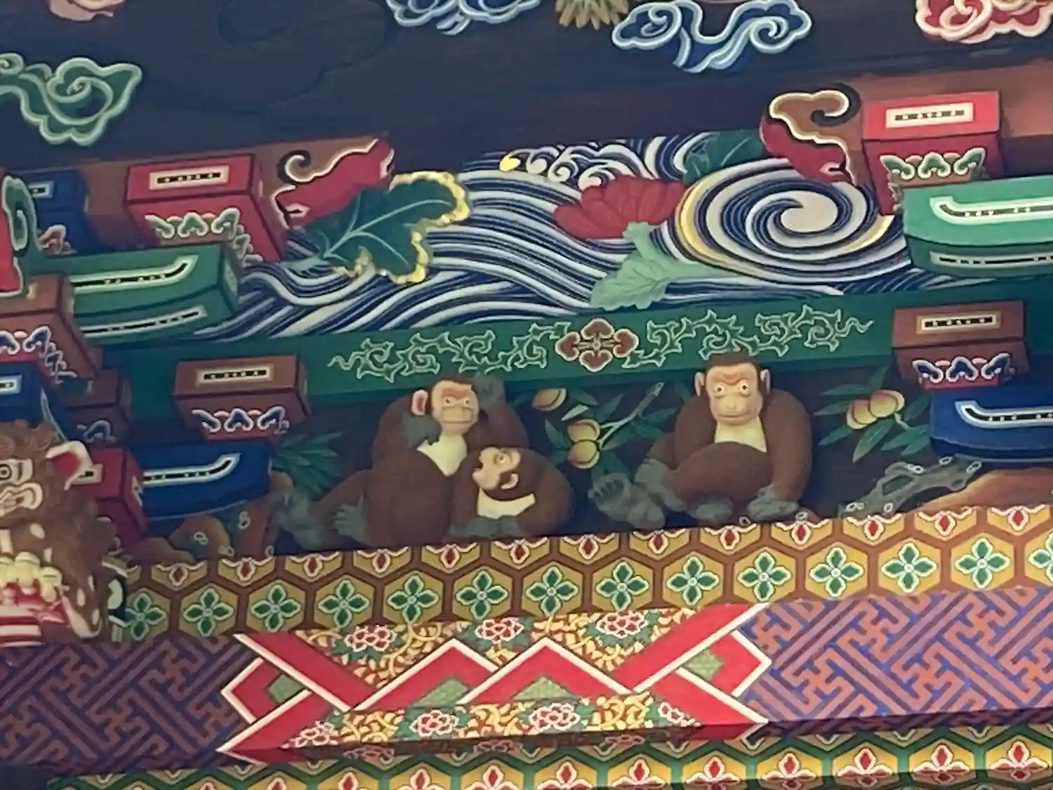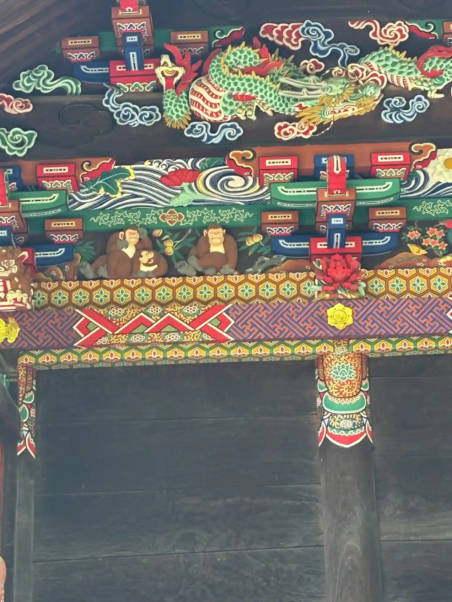 修復中で「つなぎの龍「」は見れませんでしたけど・・・反対側の「お元気三猿」は見れました。
