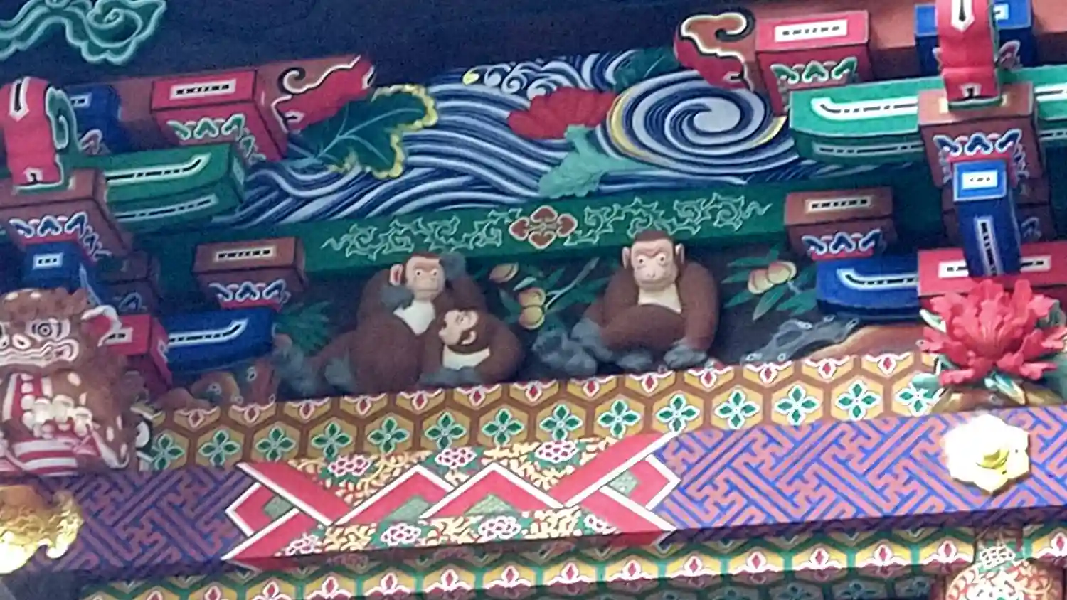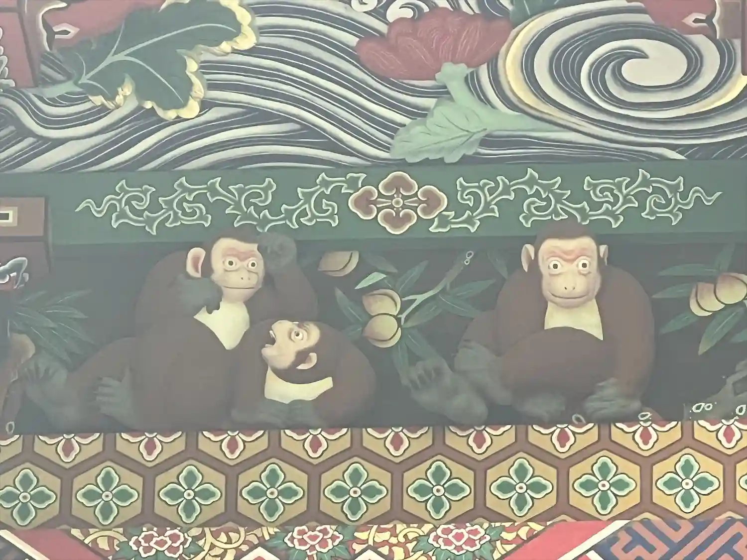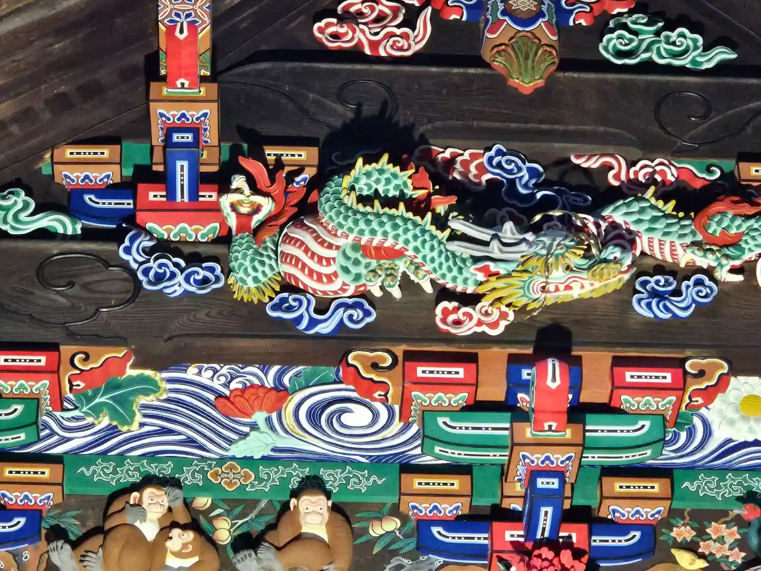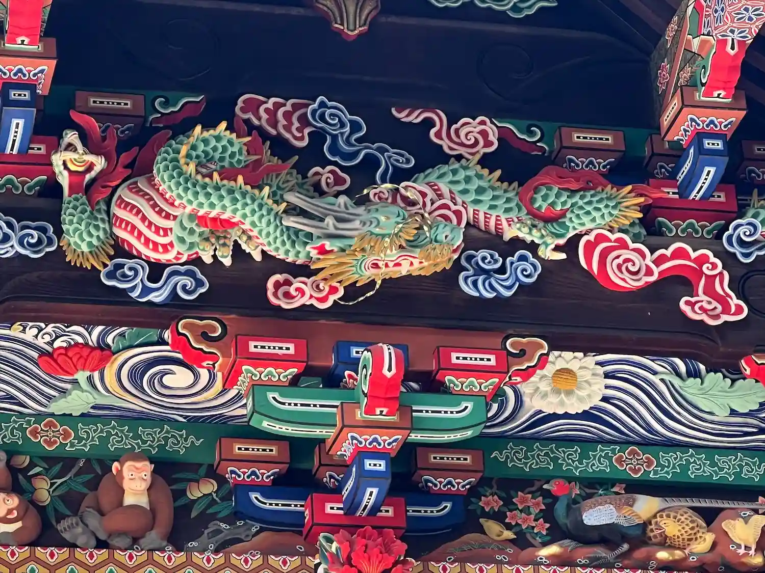 修復中で「つなぎの龍「」は見れませんでしたけど・・・反対側の「お元気三猿」は見れました。