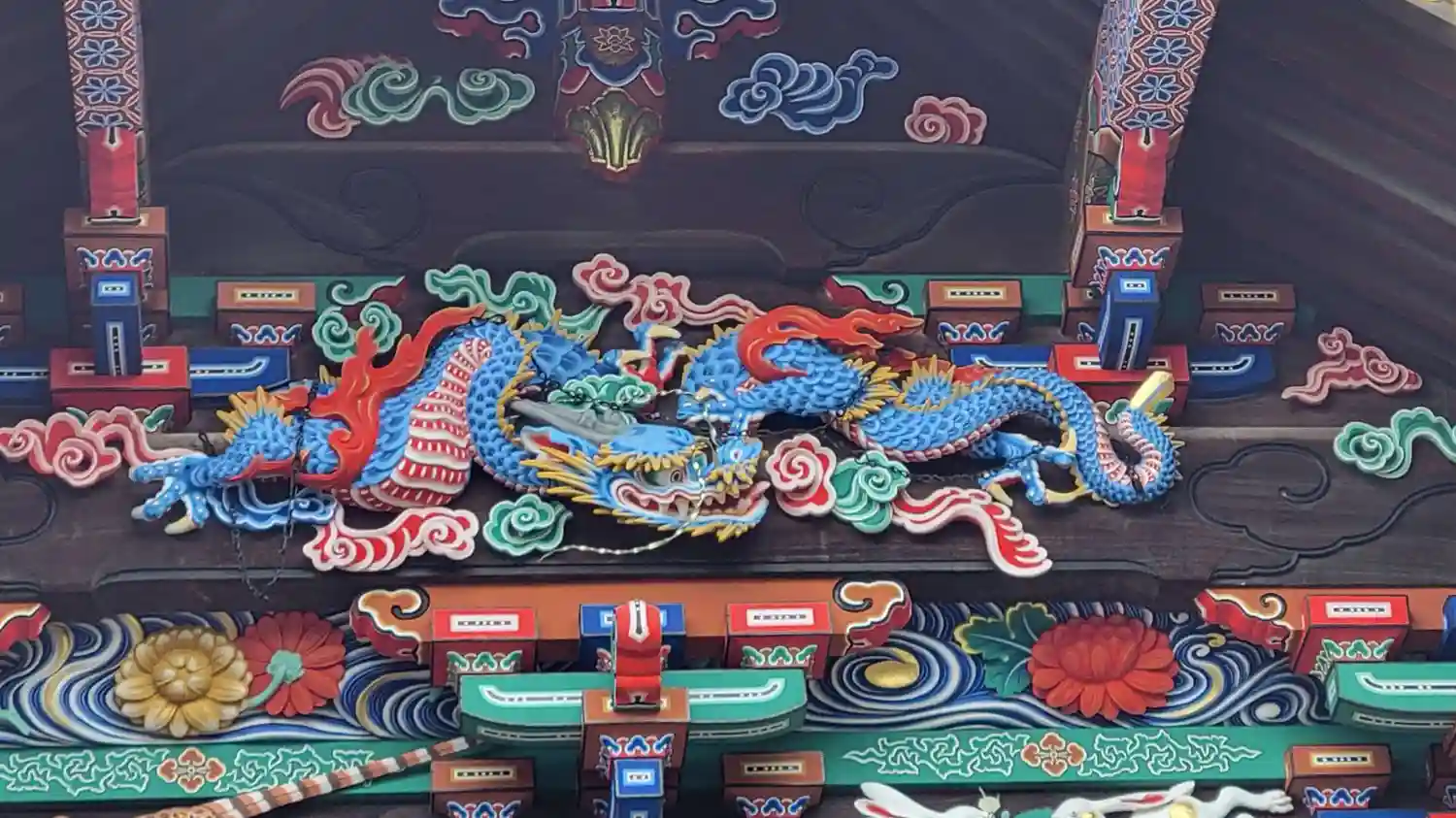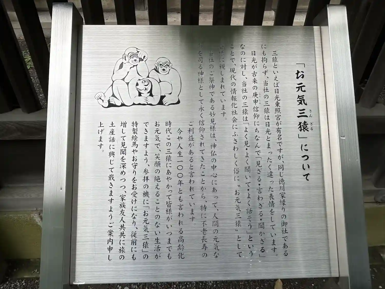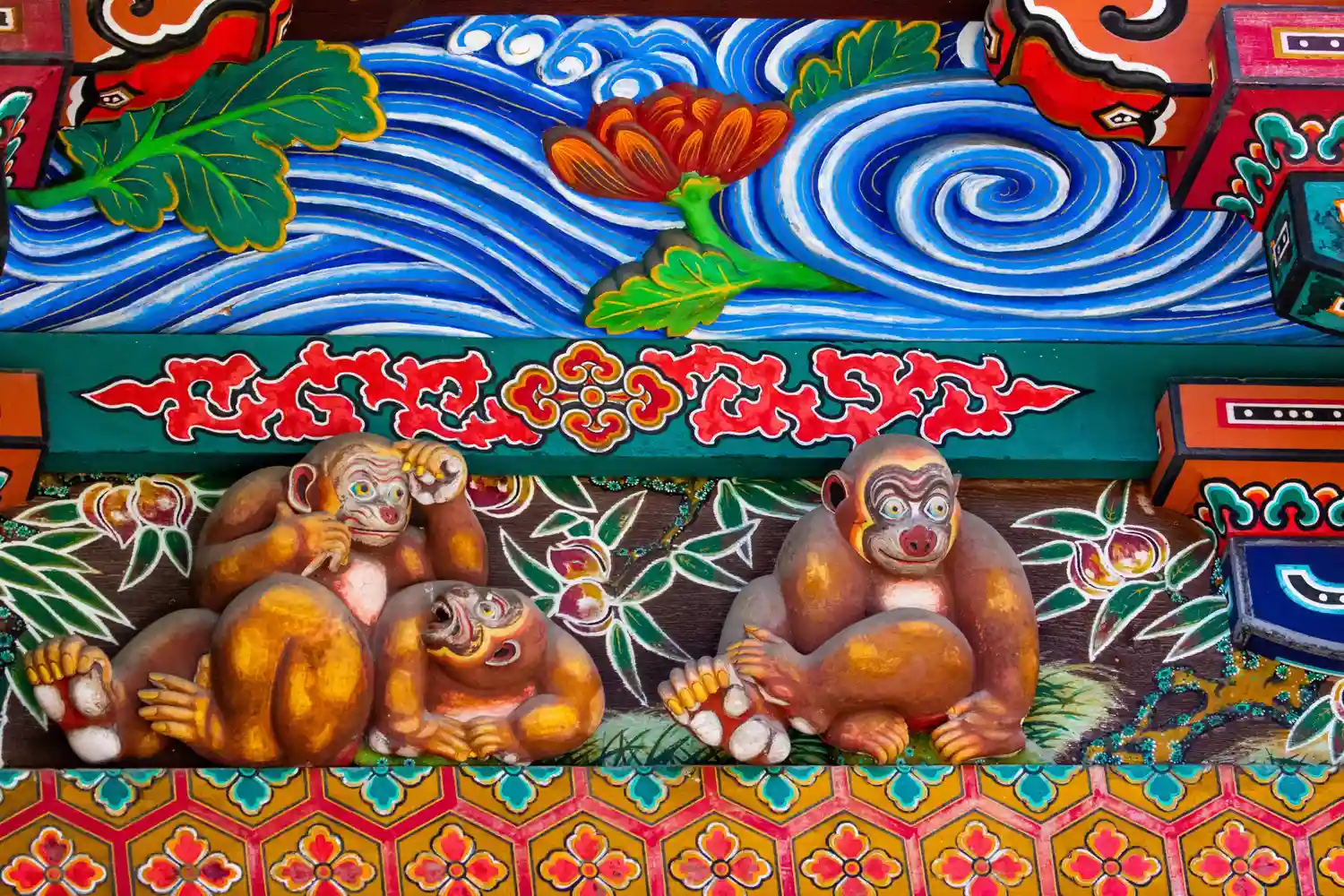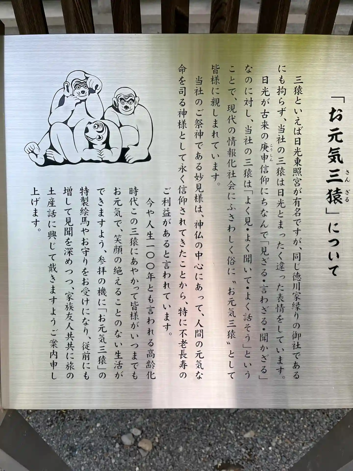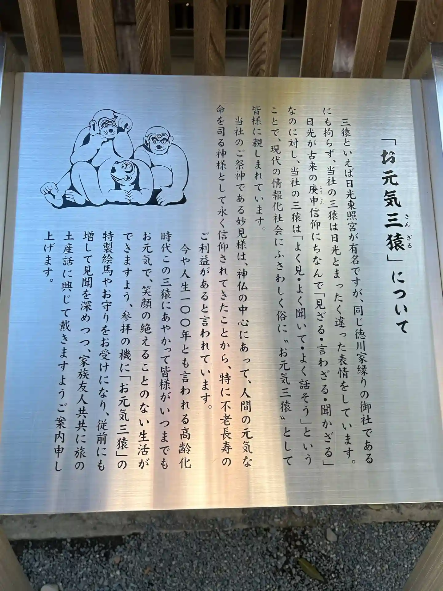 修復中で「つなぎの龍「」は見れませんでしたけど・・・反対側の「お元気三猿」は見れました。