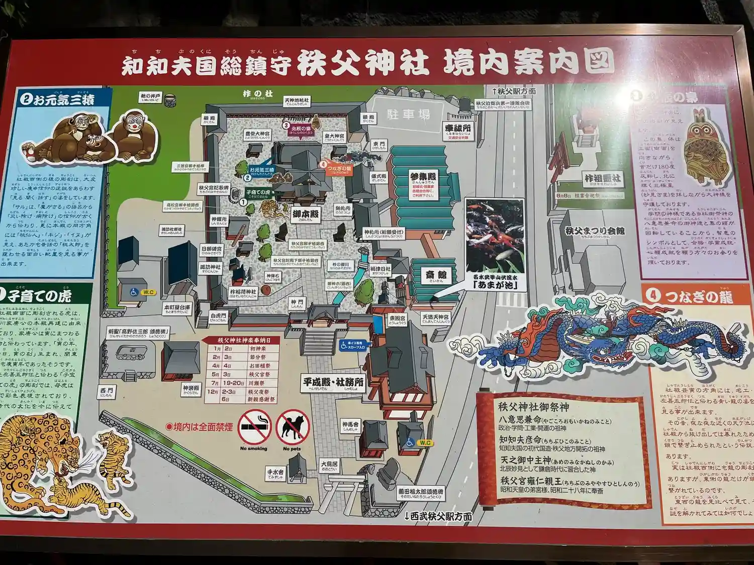 秩父駅の近くにあって秩父夜祭りの会場になっている事もあり、境内には常に一定数以上の参拝者がいる印象…