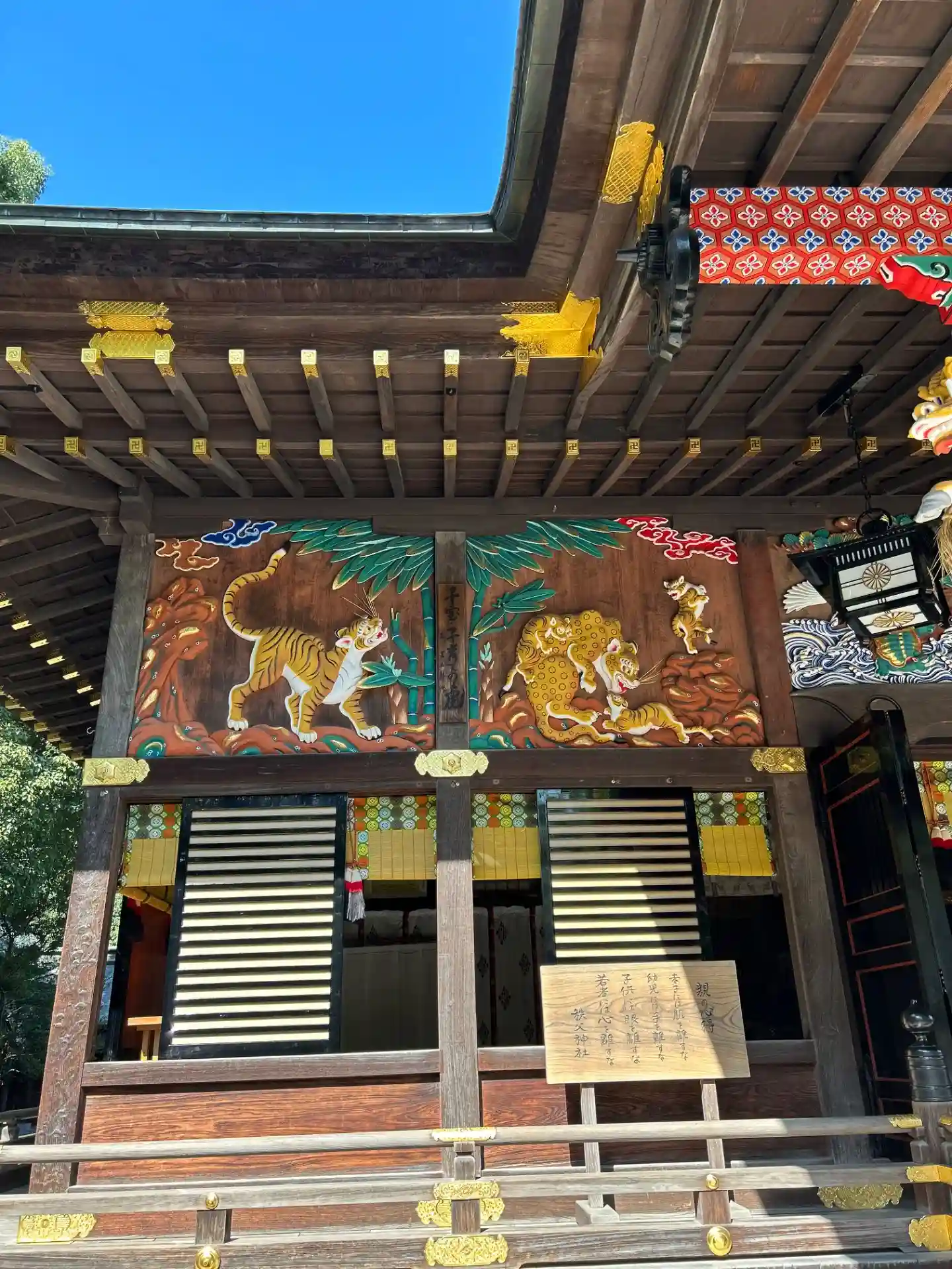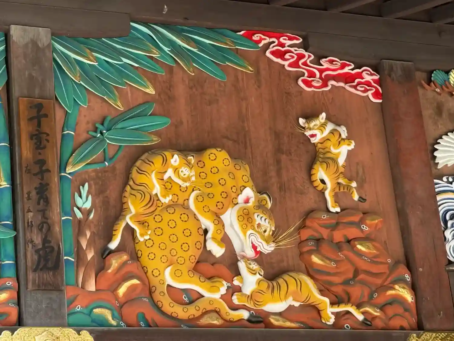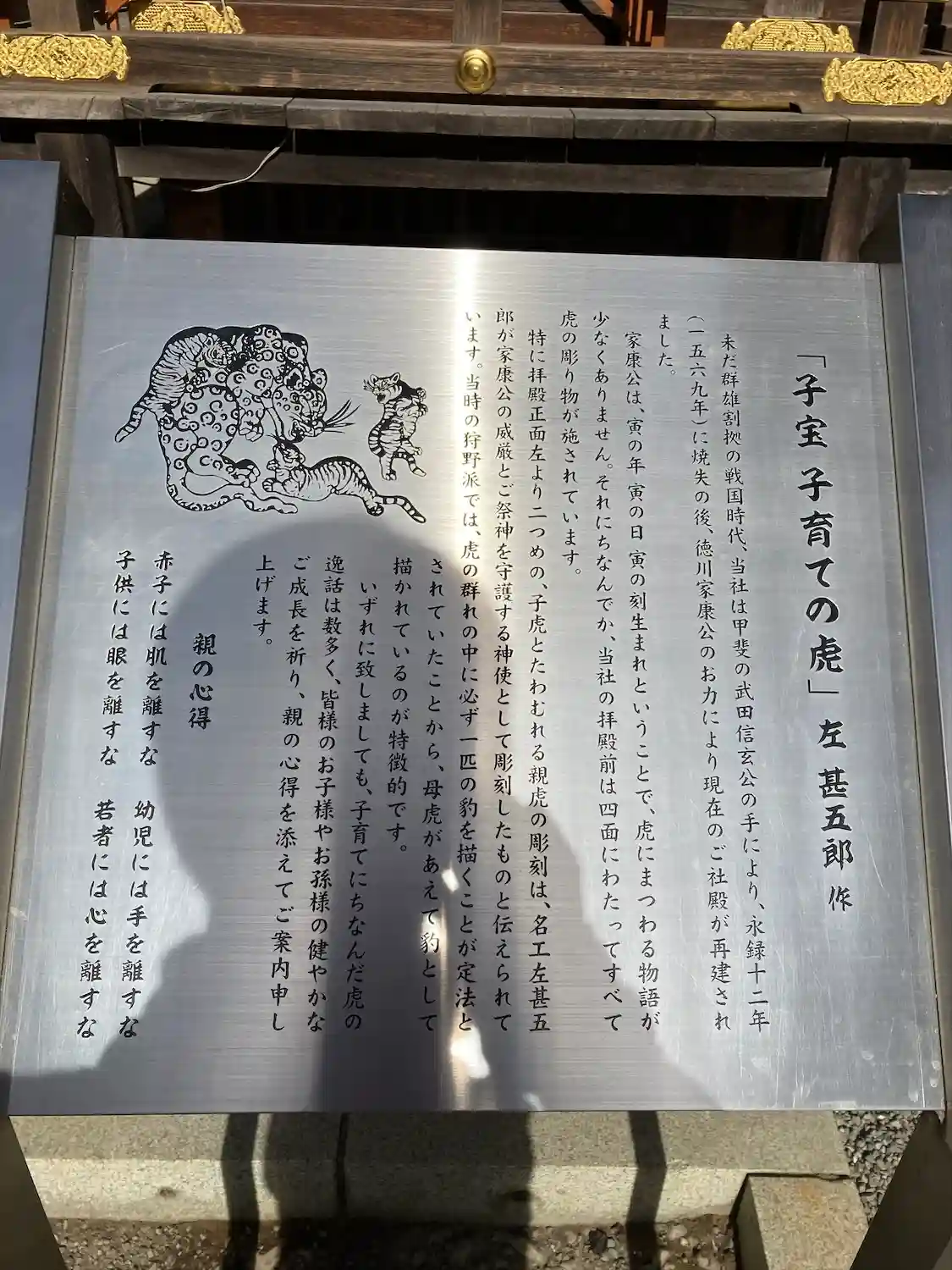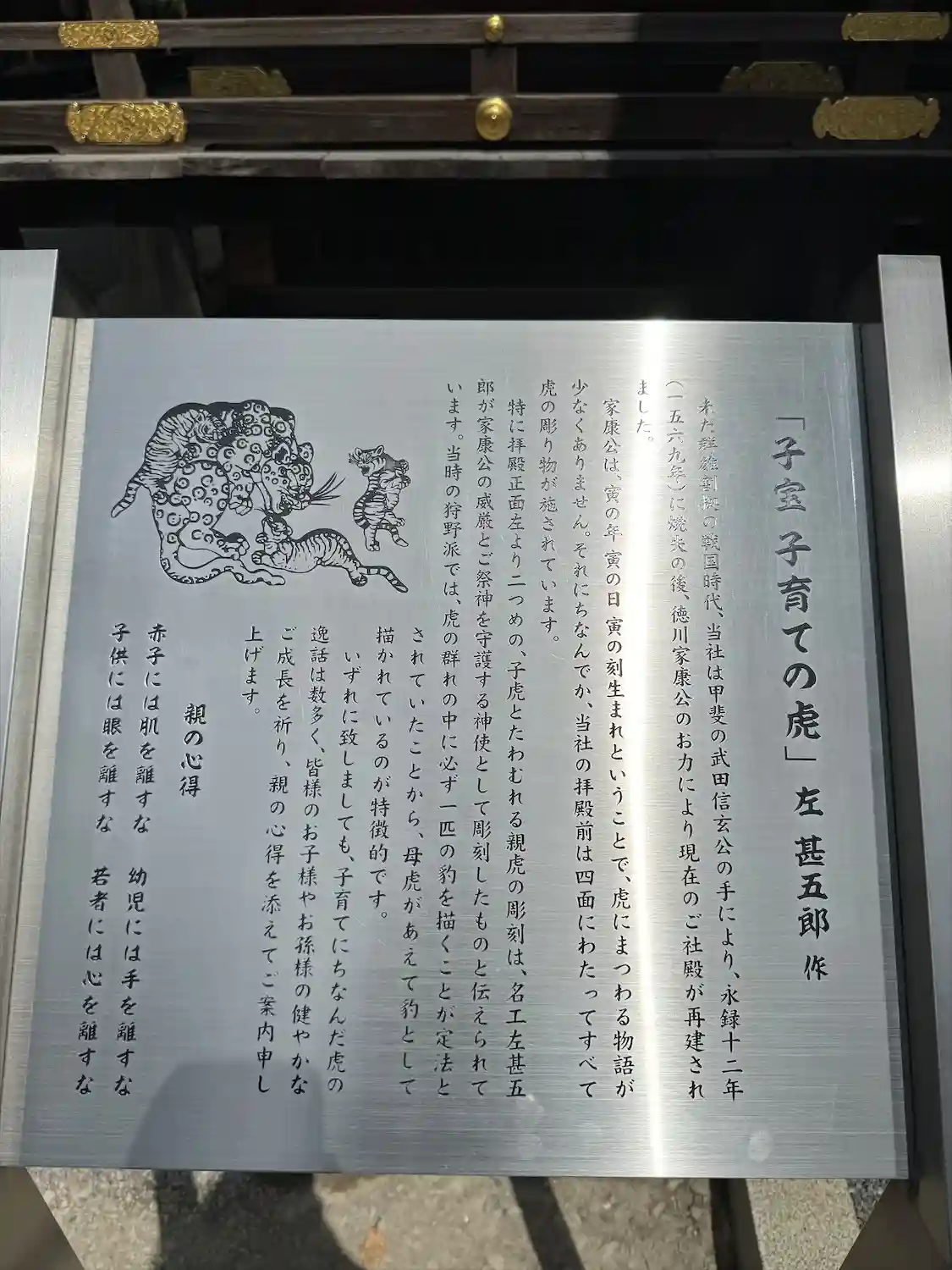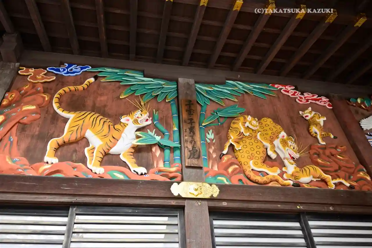 本殿の彫刻、つなぎの龍と子宝・子育ての虎が描かれた御朱印です