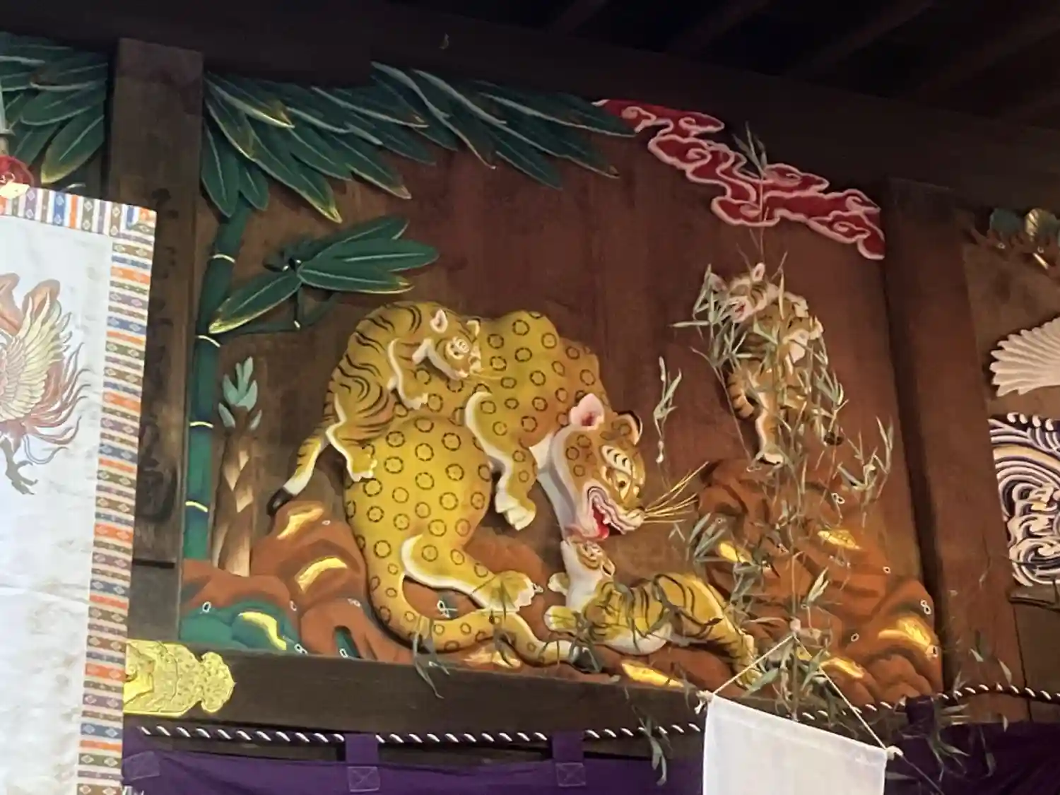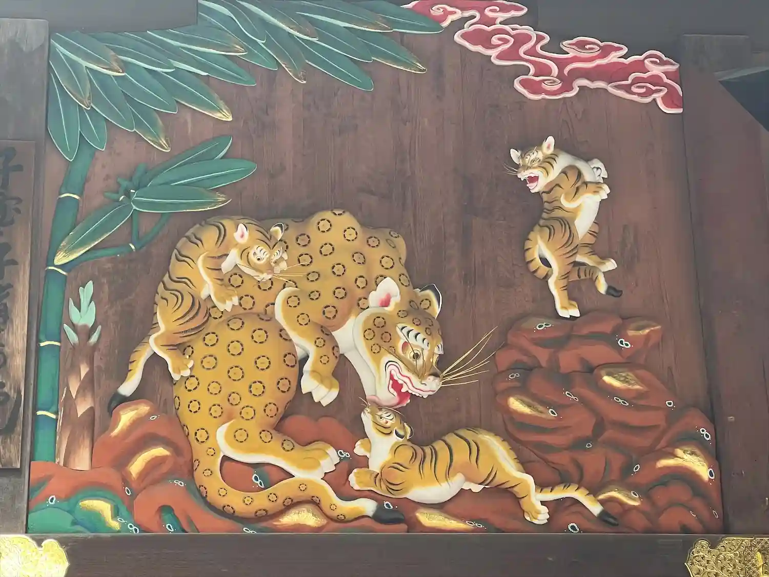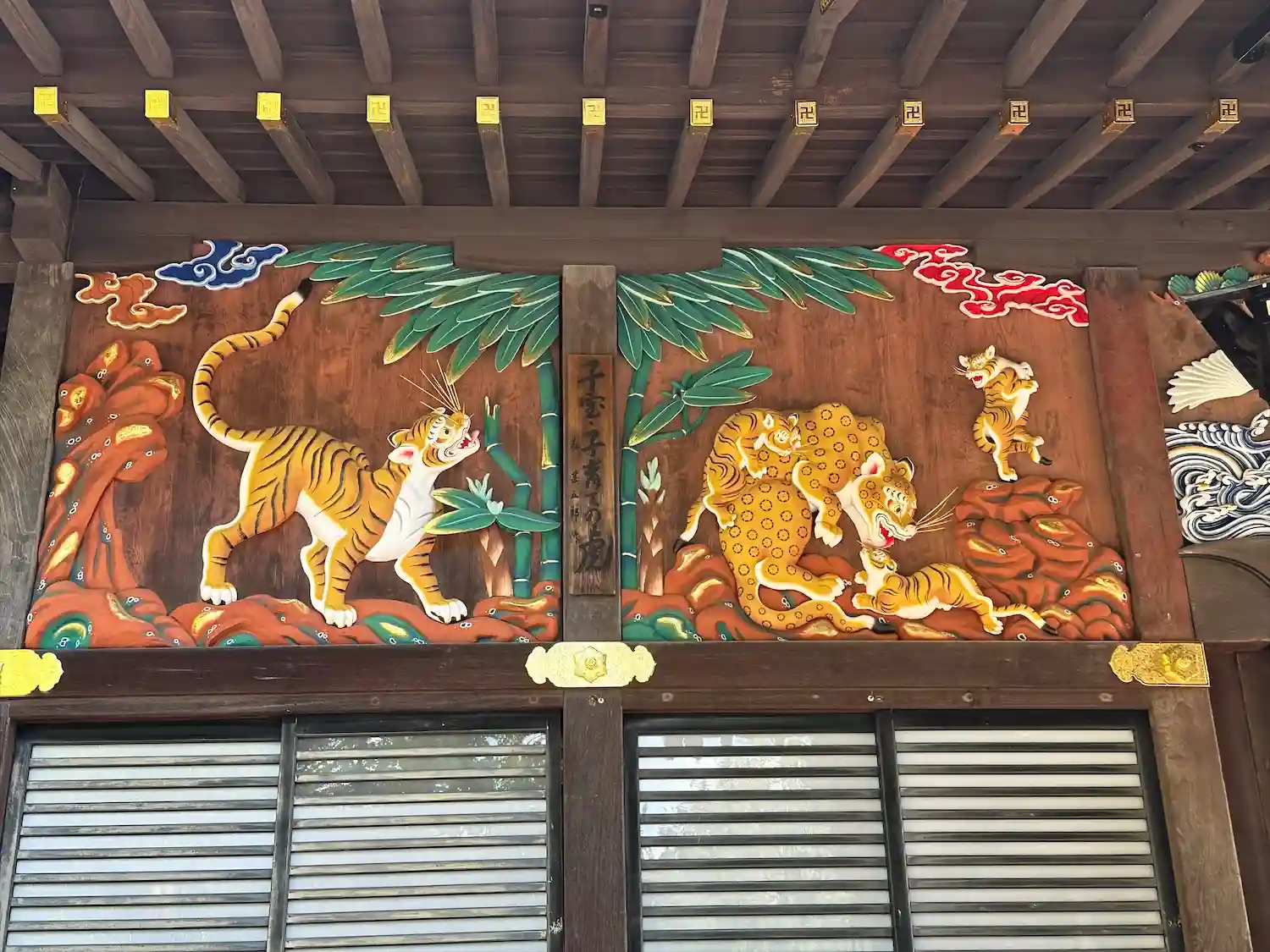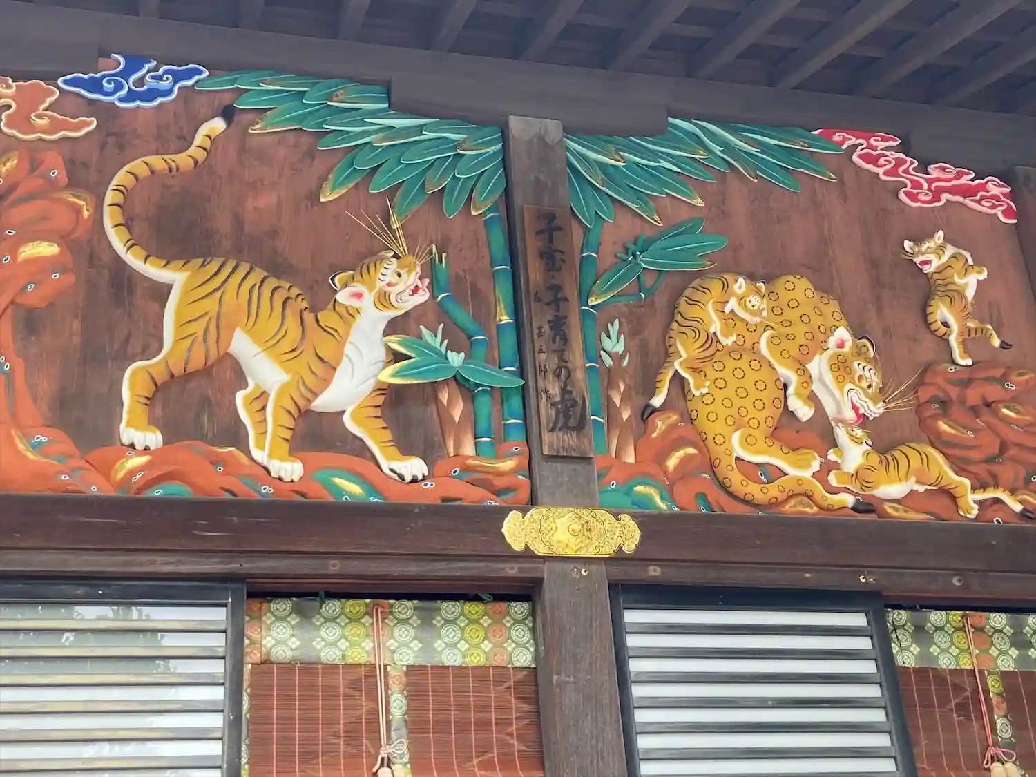 本殿の彫刻、つなぎの龍と子宝・子育ての虎が描かれた御朱印です