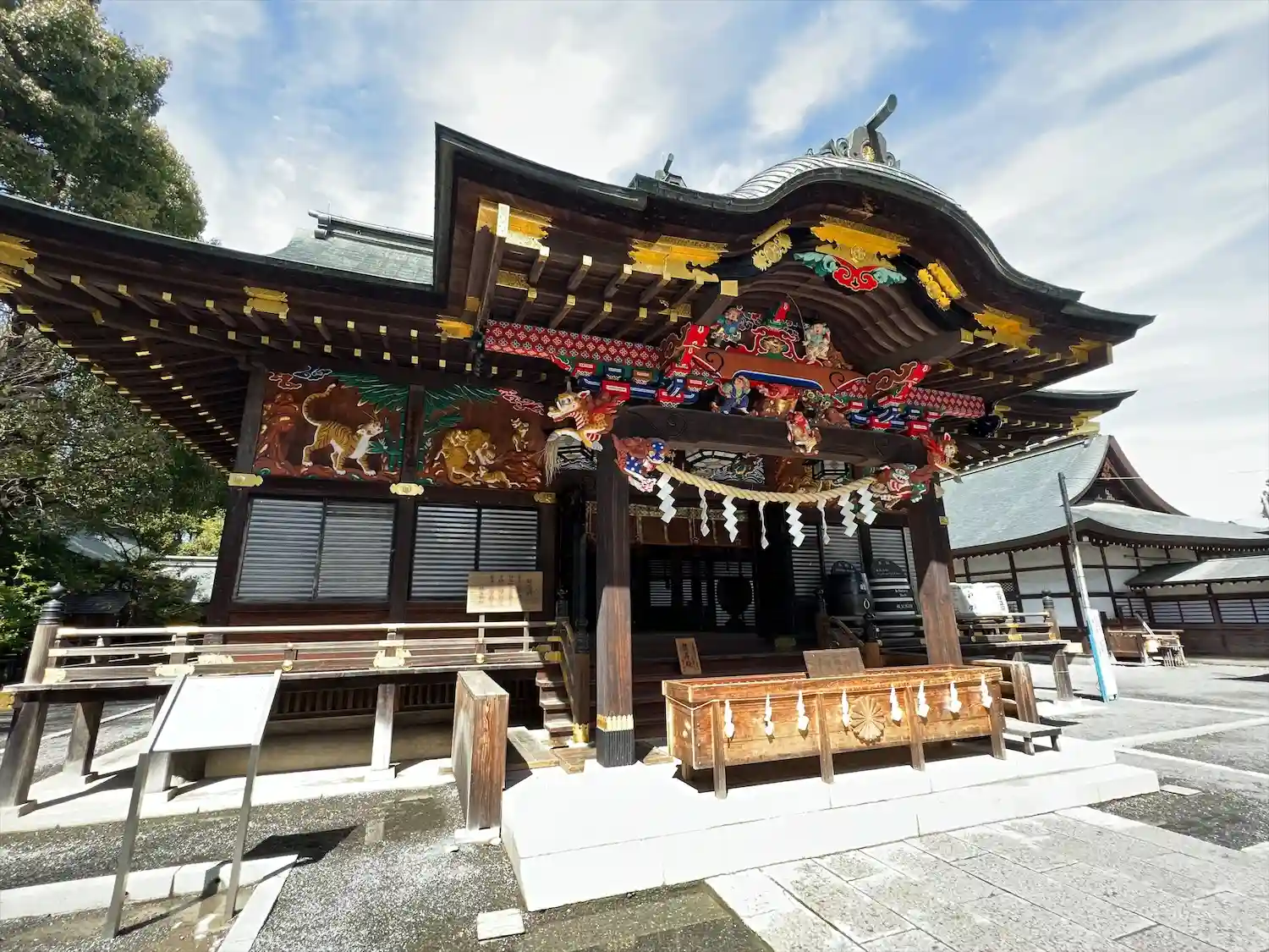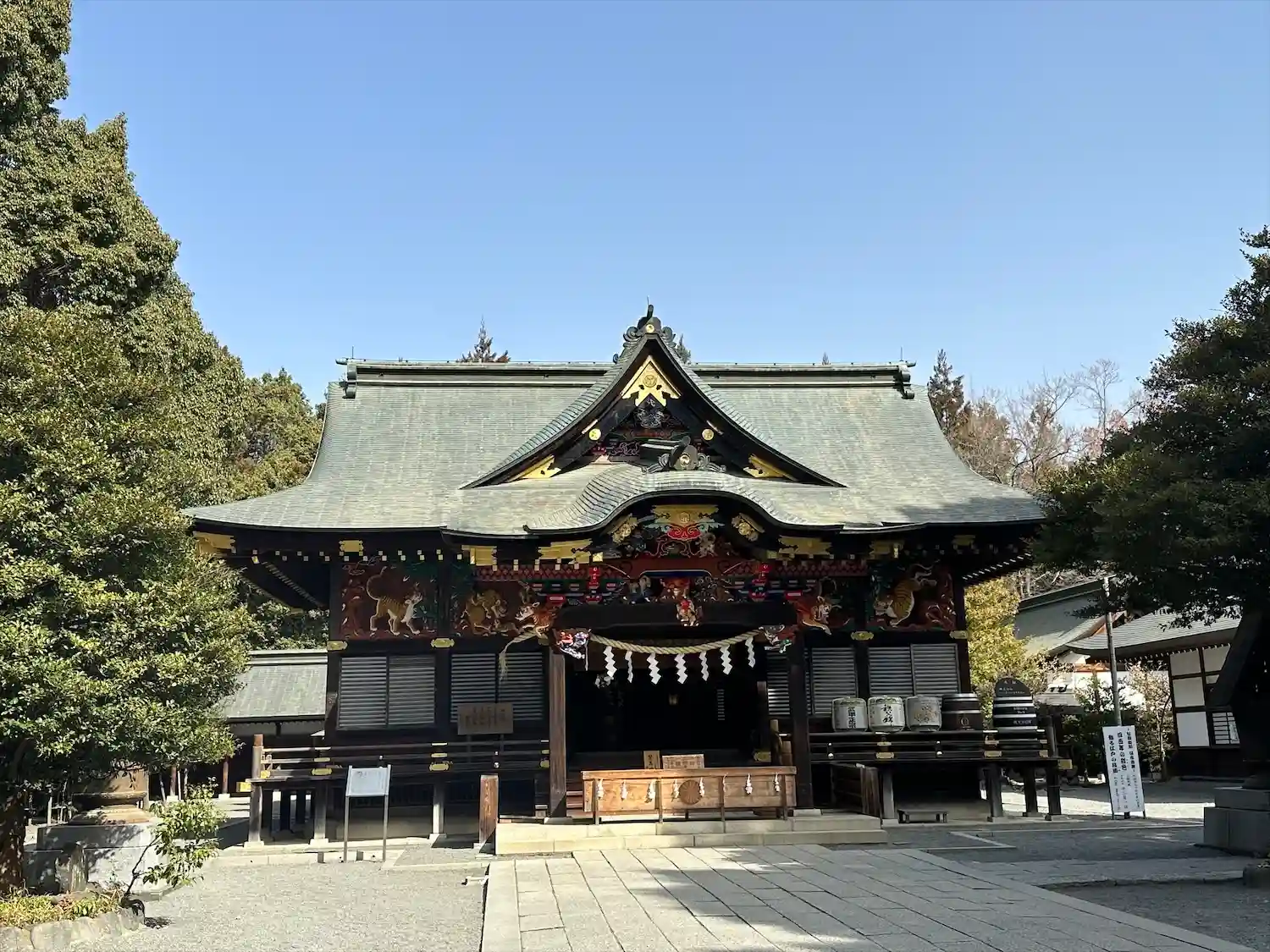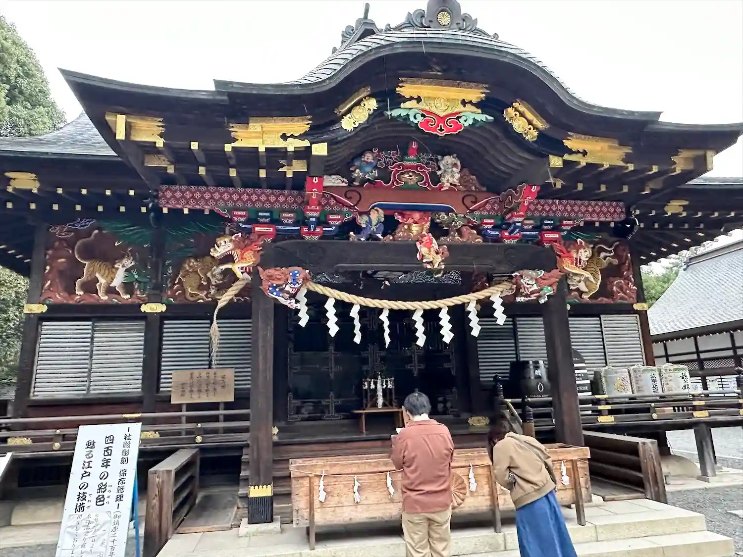 社殿の彫刻が素晴らしい。