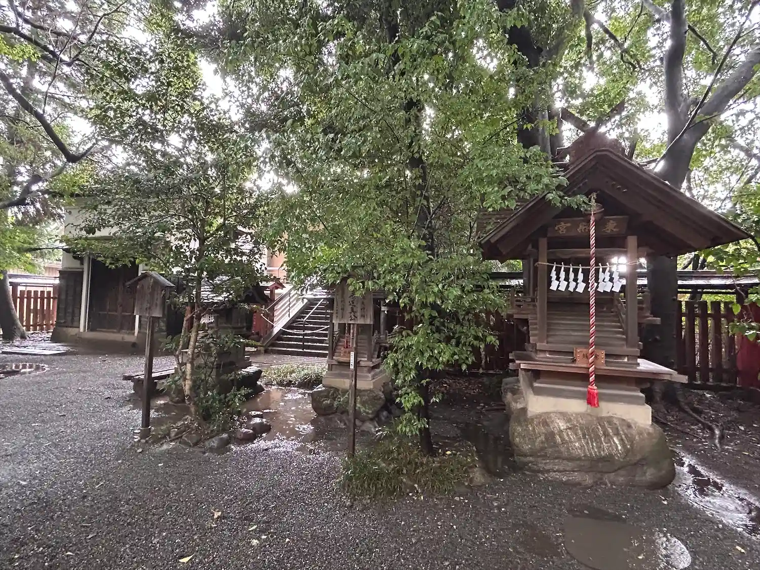 車で9時過ぎに到着。神社駐車場に止めて雨の中参拝。
