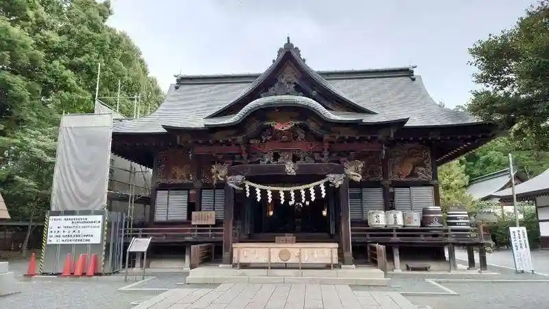 拝殿は改修工事中。