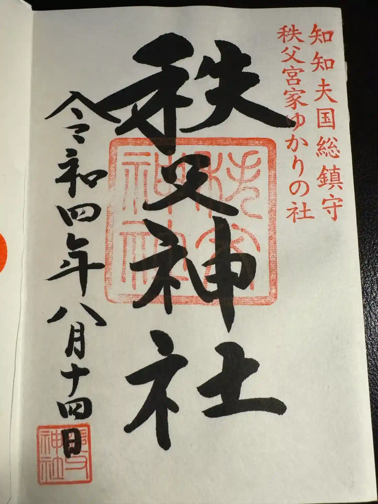埼玉県秩父の一の宮神社、秩父神社2度目ですが、一の宮神社巡拝用の和紙御朱印帳に頂きました。