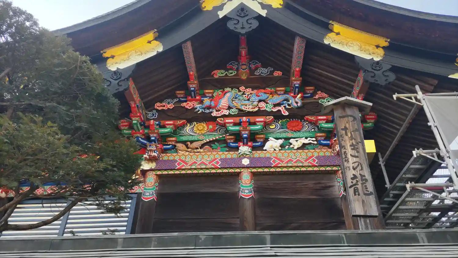 以前おまいりした際に、補修中で観られなかった社殿の…