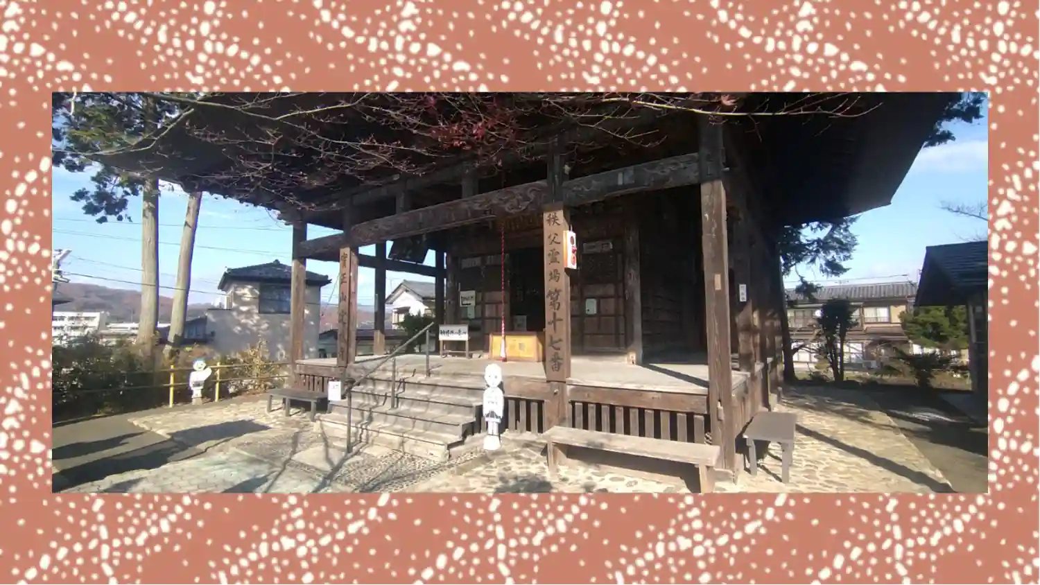 また、札所入口前の坂道や、すぐそばのけやき公園なども登場しています。