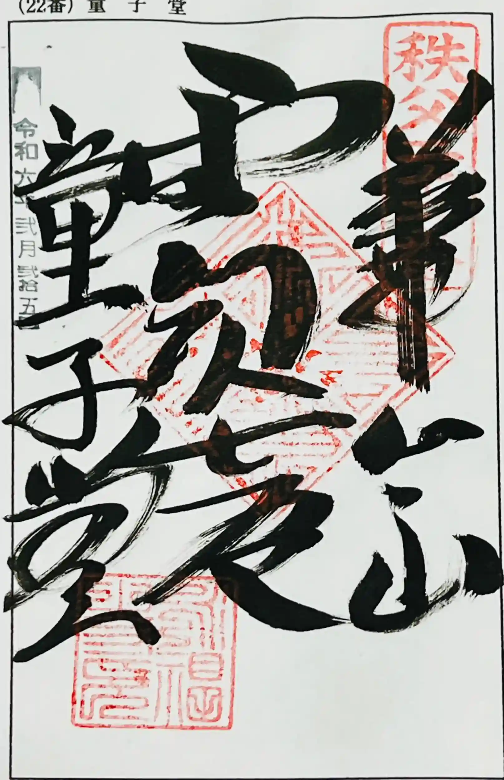 埼玉県 秩父市 寺尾 に境内を構える、華台山 童子堂 (永福寺) 2024 に日本百観音 秩父札所三十四巡礼にて参拝致しました、当方は 道の駅 全国制覇者で 全国の寺社、霊場を参拝してますが、ここ秩父地方の方々の人柄の良さ 優しさ、歴史的建造物 食べ物 四季折々の景観 が素晴らしい地方でした、どの様な寺院か引用を用いて調べて見ました、山号は 華台山、寺号は 永福寺、別称は 童子堂、宗旨 宗派は 真言宗 豊山派、ご本尊は 聖観世音菩薩、秩父札所三十四観音霊場 第二十二番札所、札所ご本尊は 聖観世音菩薩 日本百観音 の一つ、平安時代に開山、当初は武蔵国 秩父郡 蒔田村(現・同市 蒔田)の山奥にあったが、延喜年間(901年 - 923年)子供の間に天然痘が流行した際に、蒔田村の山奥の華臺山から観世音を勧請し祈祷し湧き出る水を、患部に付けると治癒したということから、子供(童子)を守る観音様「童子堂観音」と呼ばれるようになった、その後、寺運衰微したが、江戸時代になると「栄福寺」が当堂を管理するようになった。1701年(元禄14年)に再建された童子堂は、現在地より約800メートル北に位置(北緯36度0分51.6秒 東経139度4分22秒)していたが、1910年(明治43年)に現在地の永福寺(栄福寺)の境内に移転した
