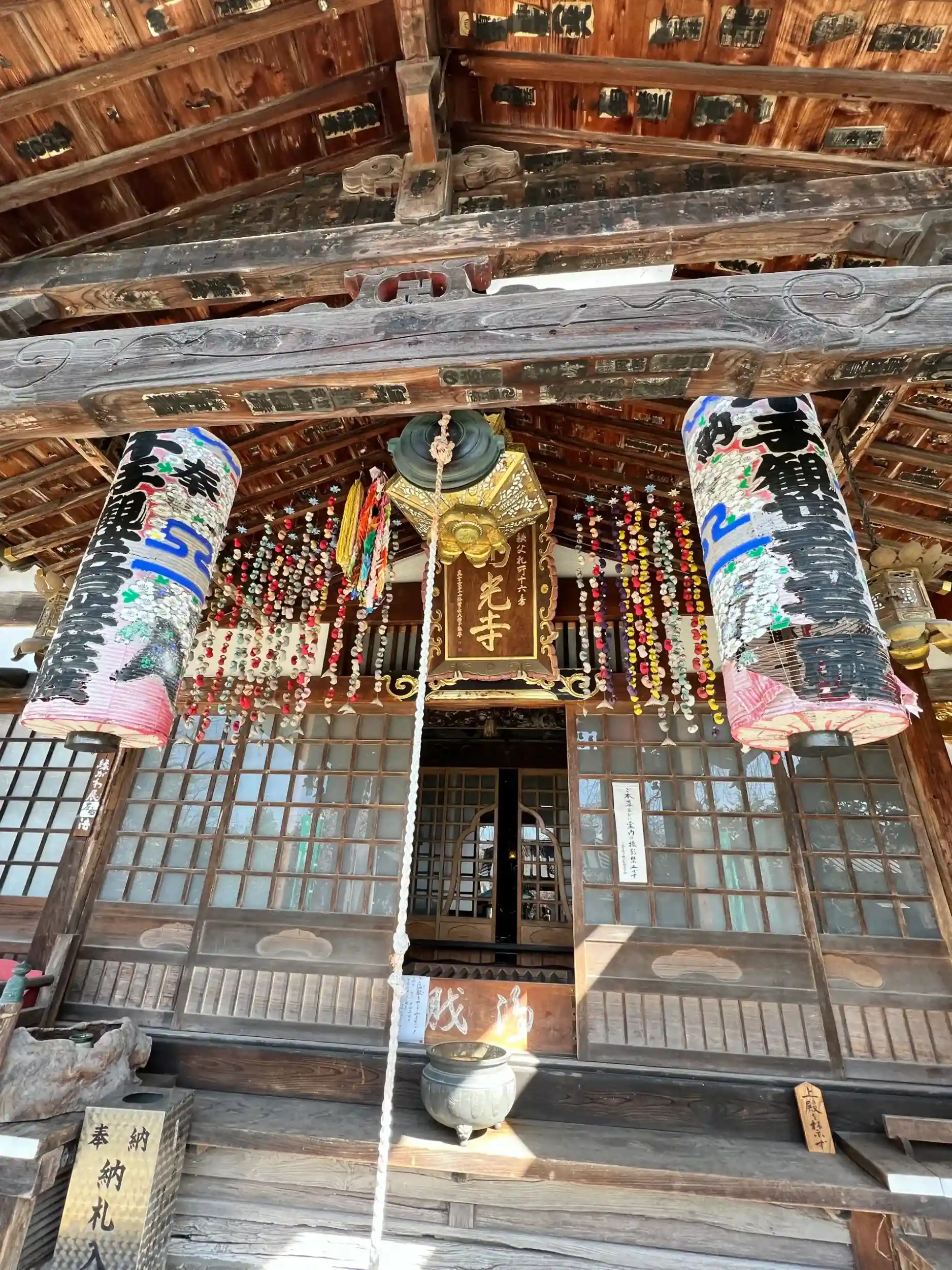そして、この地に移して十六番とした事は、とりもなおさず現在の三十四ケ所、 ひいては日本百観音の成立という大変重要な意味を持つこととなります。 それは江戸の時代へ向かう潮流の一つであったのではないかと思われます。 果たして、江戸期に入り元禄頃になると多くの秩父の札所観音堂が江戸庶民の支持 を得て改修築されます。 十六番本尊は後に現本堂に移され、お堂は「札堂」として残されました。即ち、このお堂は長享番付当時の唯一最古の観音堂の遺構と思われます。お堂に残 されている種々の造作の跡から元来の姿と種々変遷を経た事が想像されます。また、堂内より元禄、享保等の紀年を有する数百枚もの納札が発見され、その納札を打ち 付けた柱の無数の釘跡が歴史を感じさせます。札所めぐりのことを「打つ」とも言われるが、ここに由来しています。また、秩父札所で札堂が現存しているのは、西光寺だけである