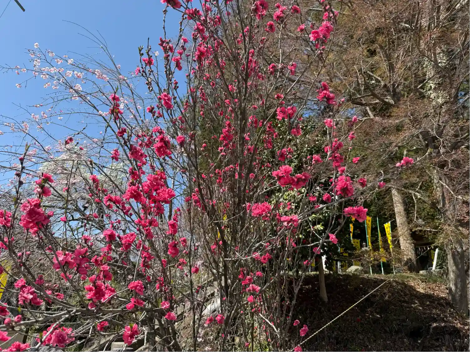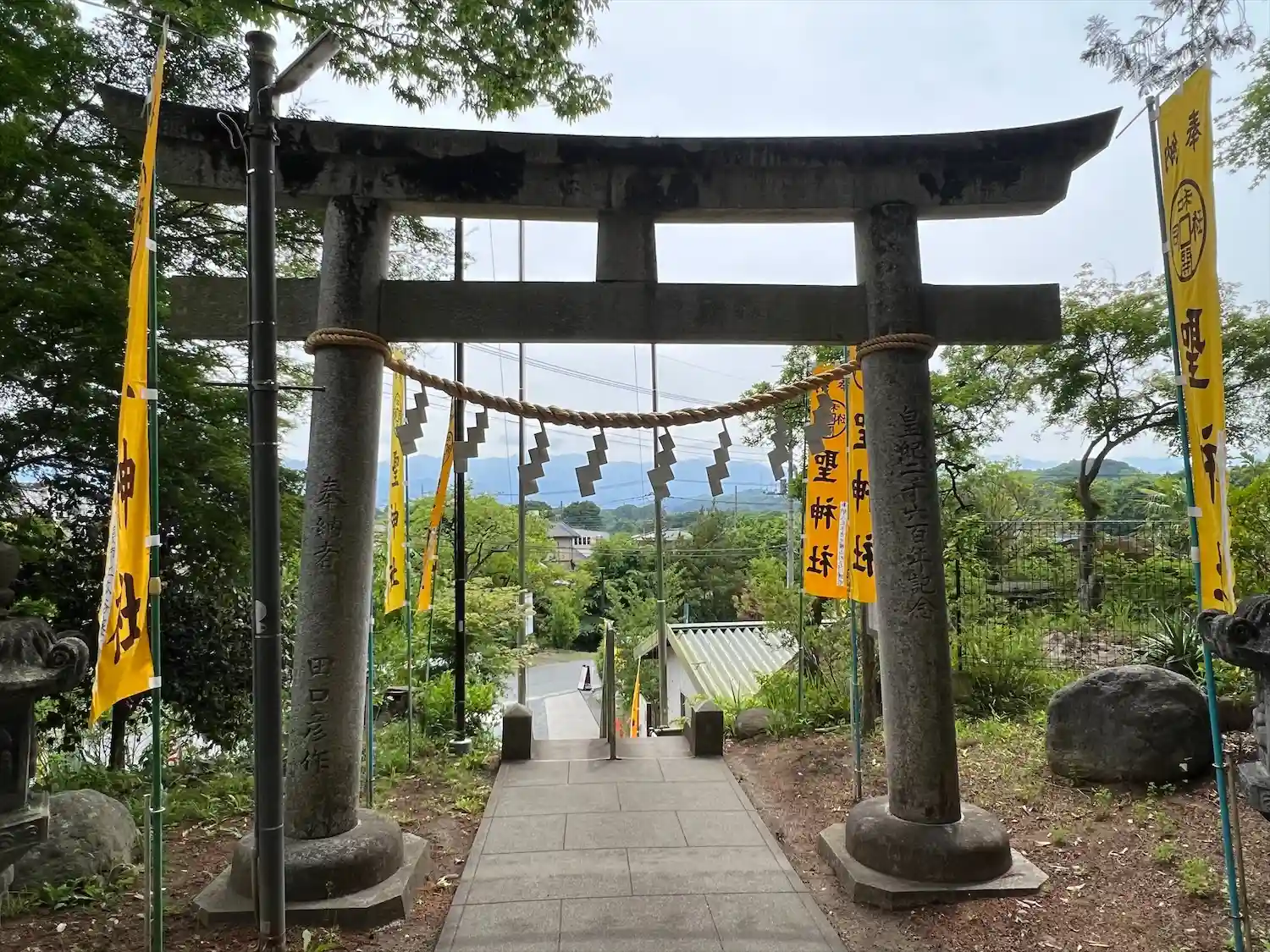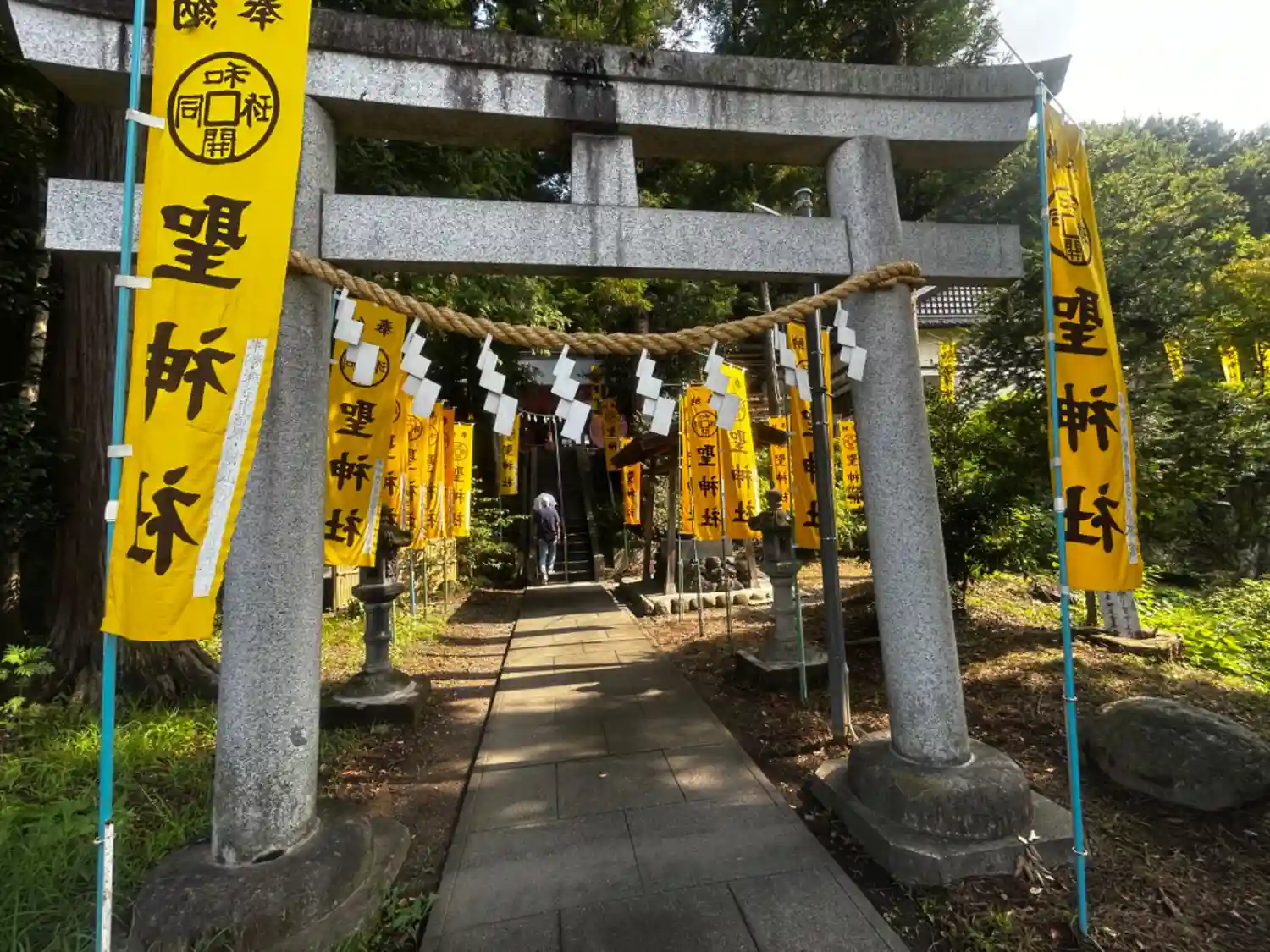 黄色ののぼりと鳥居が映えますね!