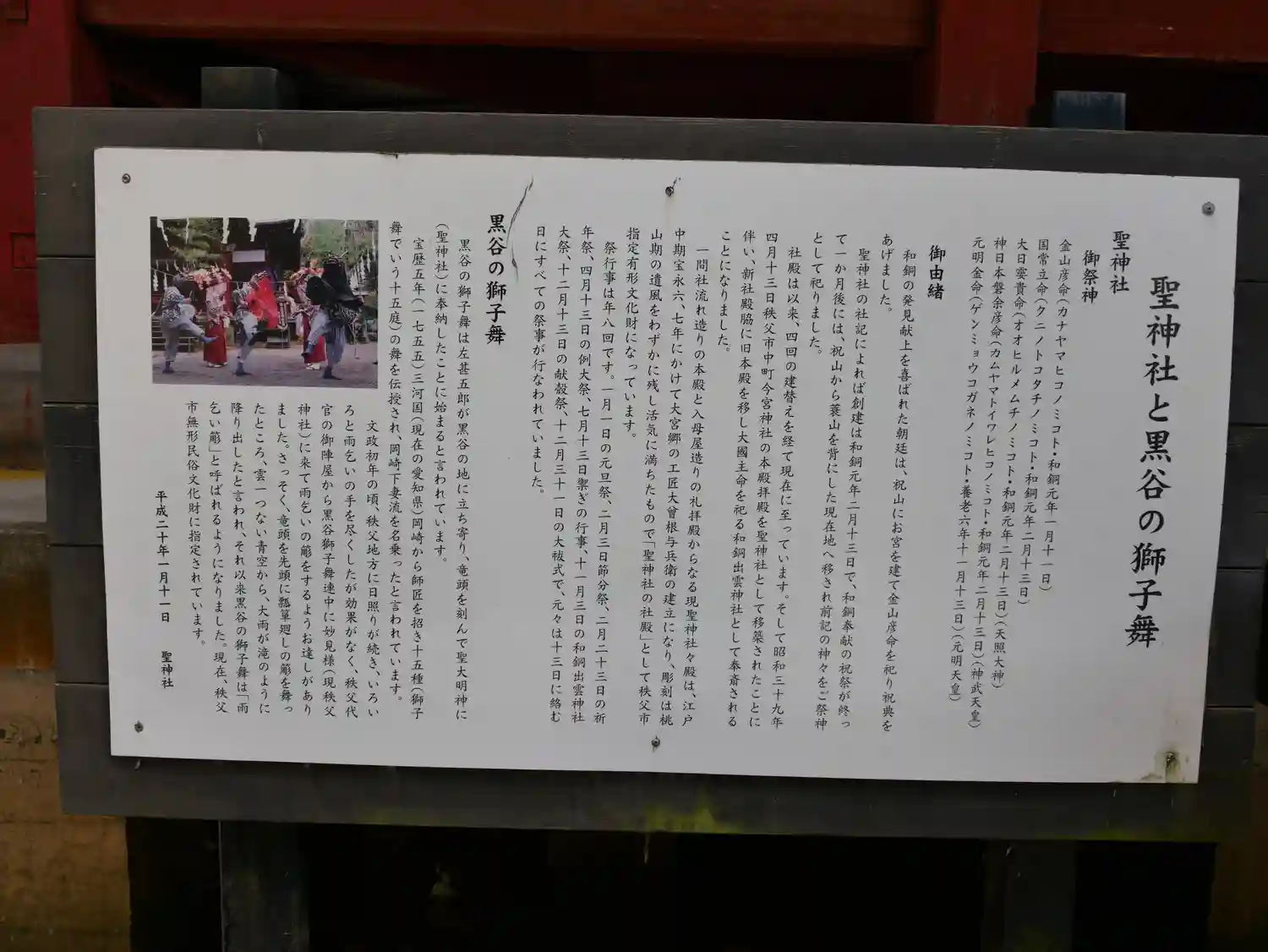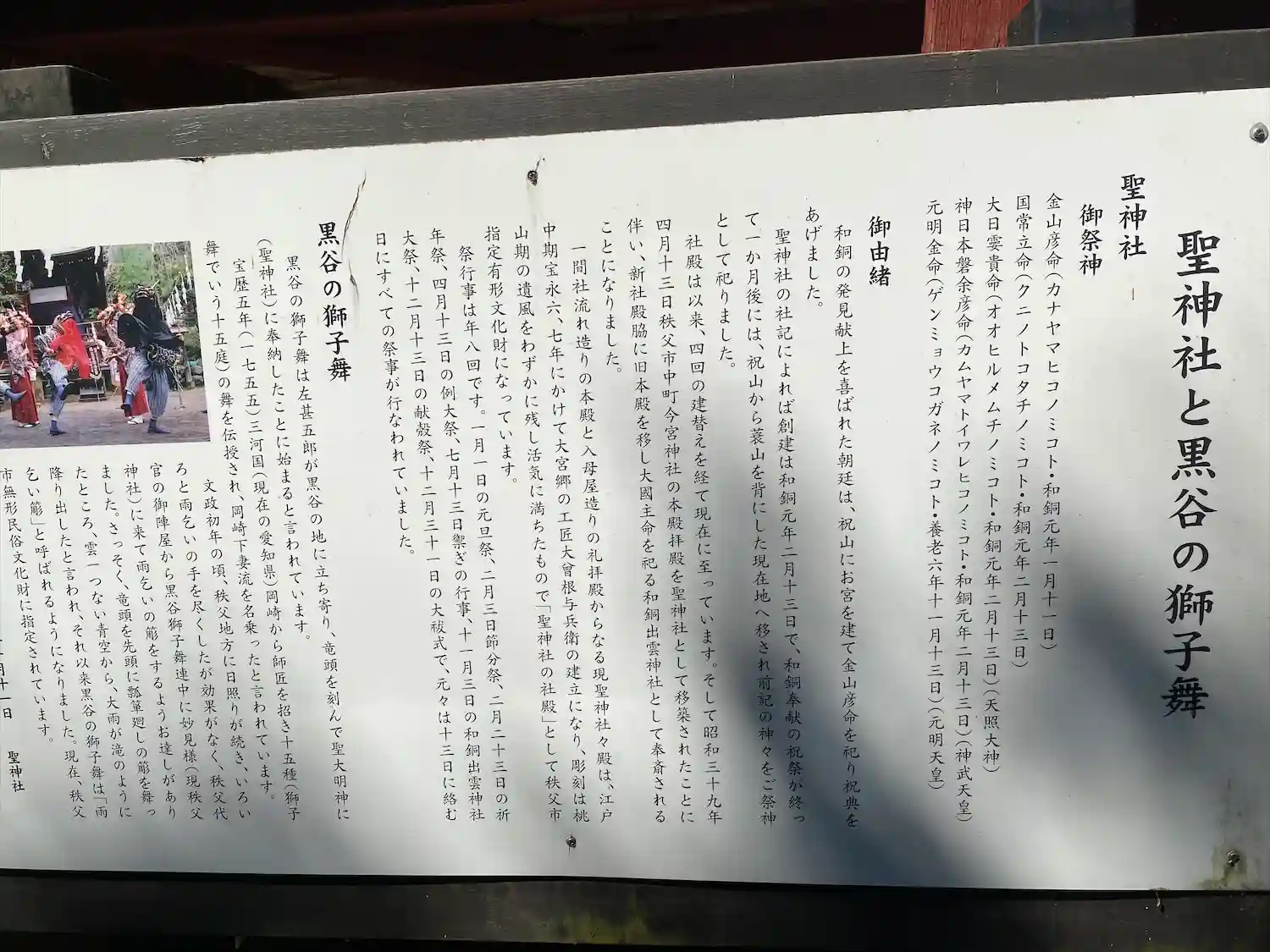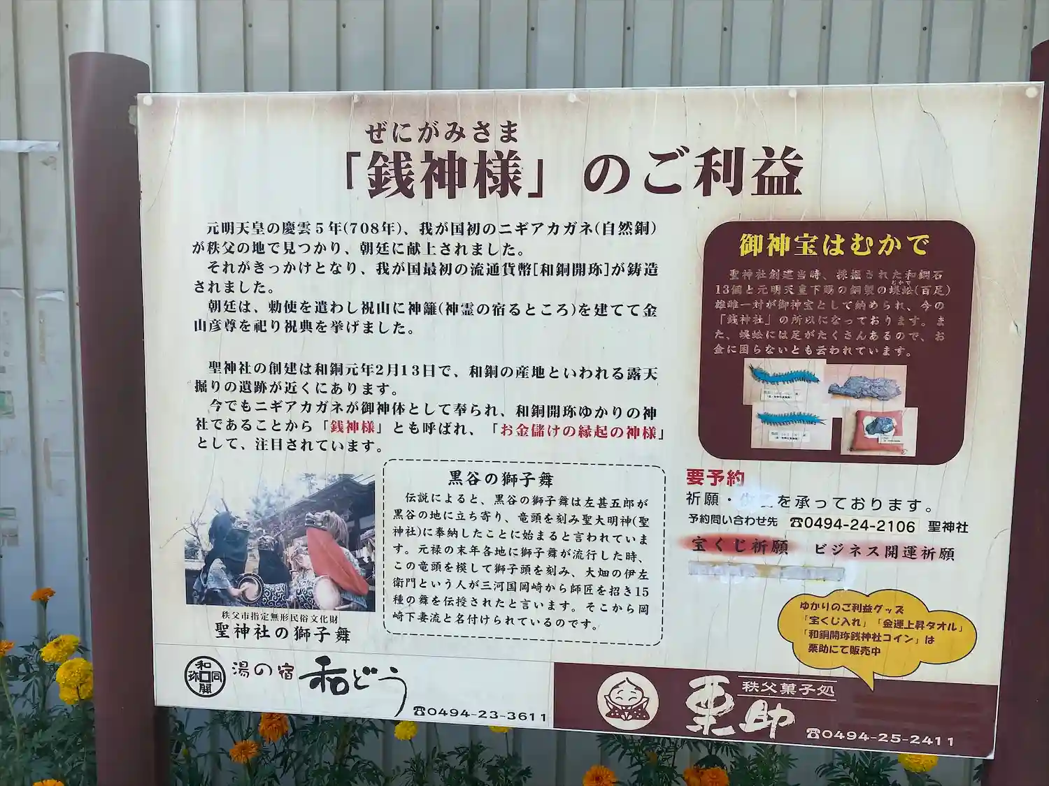 秩父の社を巡りました。こちらの地域で発見された銅塊が和同開珎の起源とのことです。元明天皇御下賜の和…