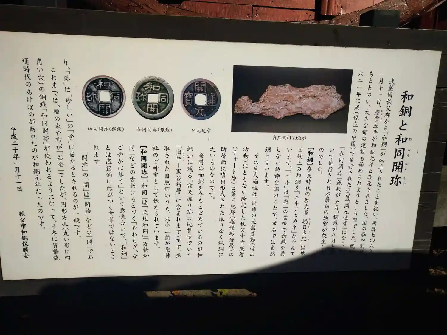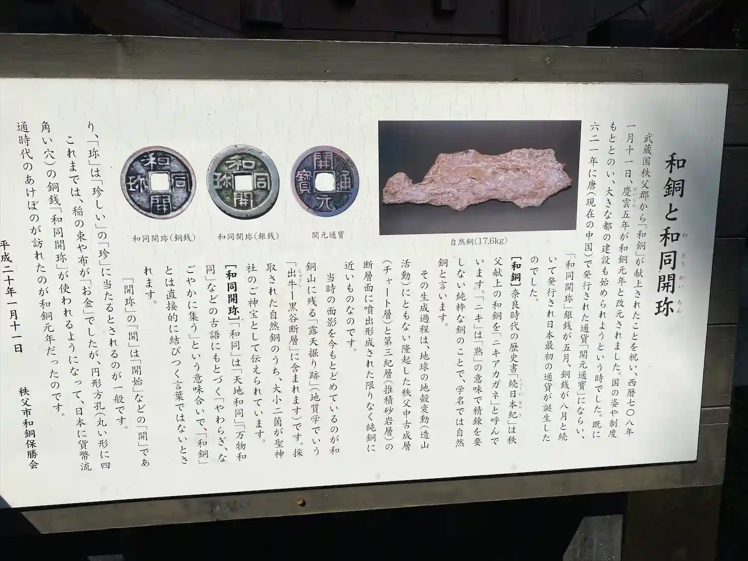和同開珎の銅って秩父でとれたんだー。