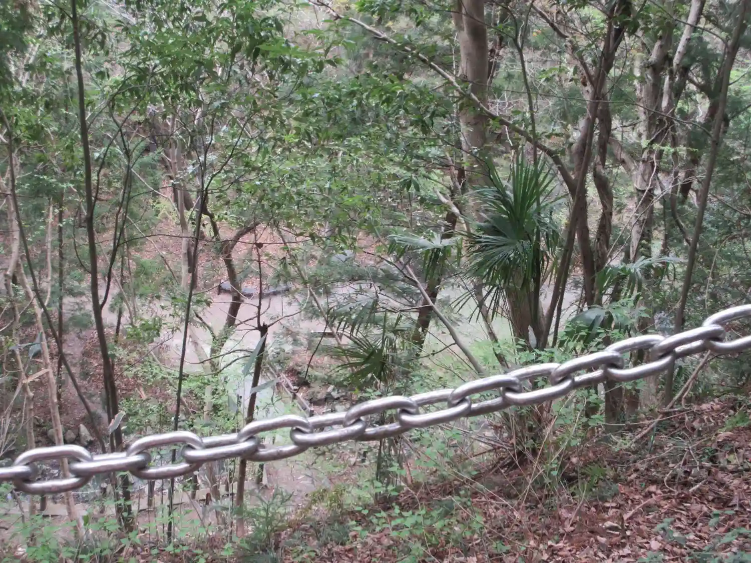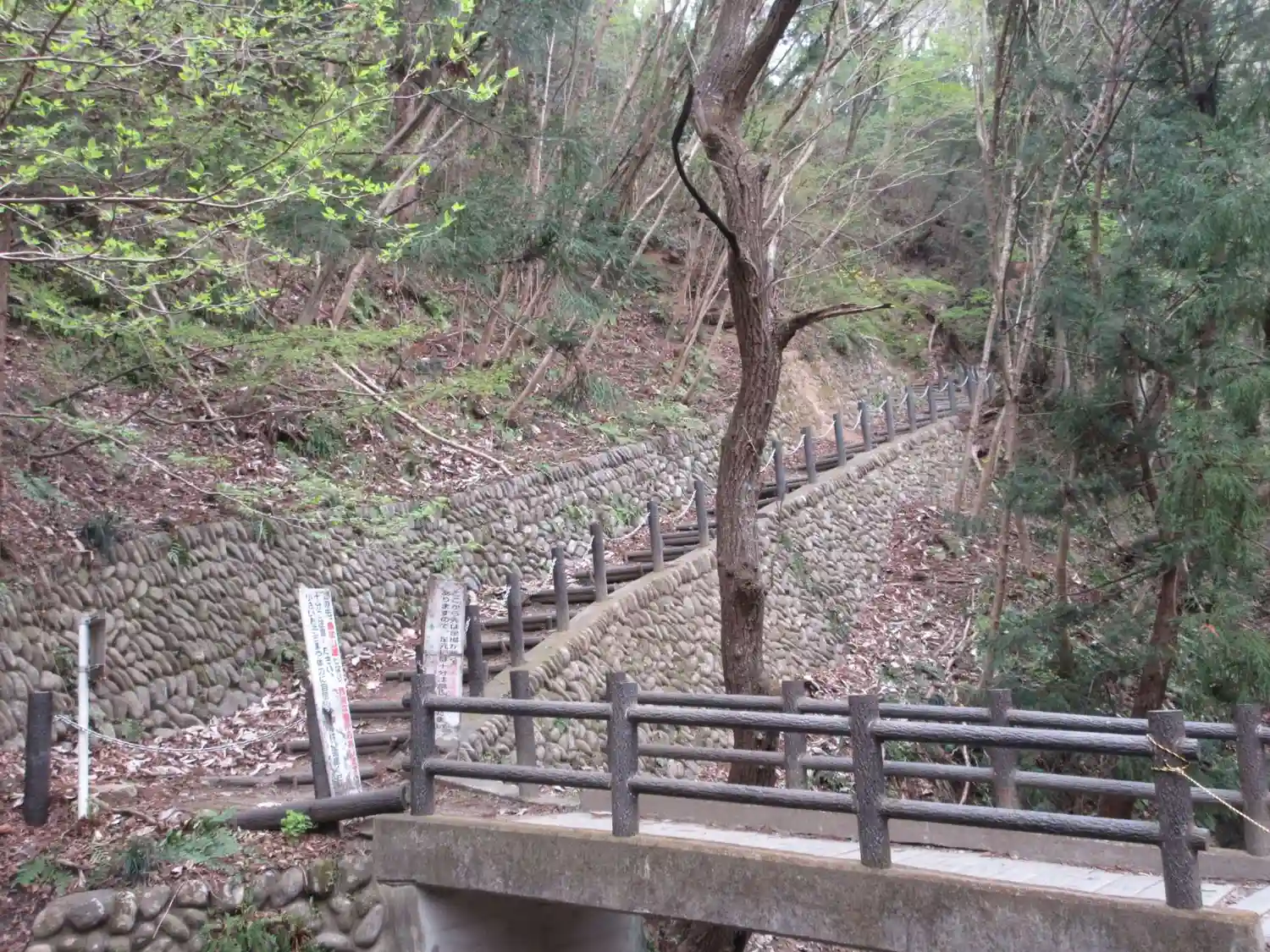 神社脇の急峻な舗装道路を五分ほど登ってからなだらかな山道を下ります。神社からでなく駅寄りの登り口から行く方が順路のようです。