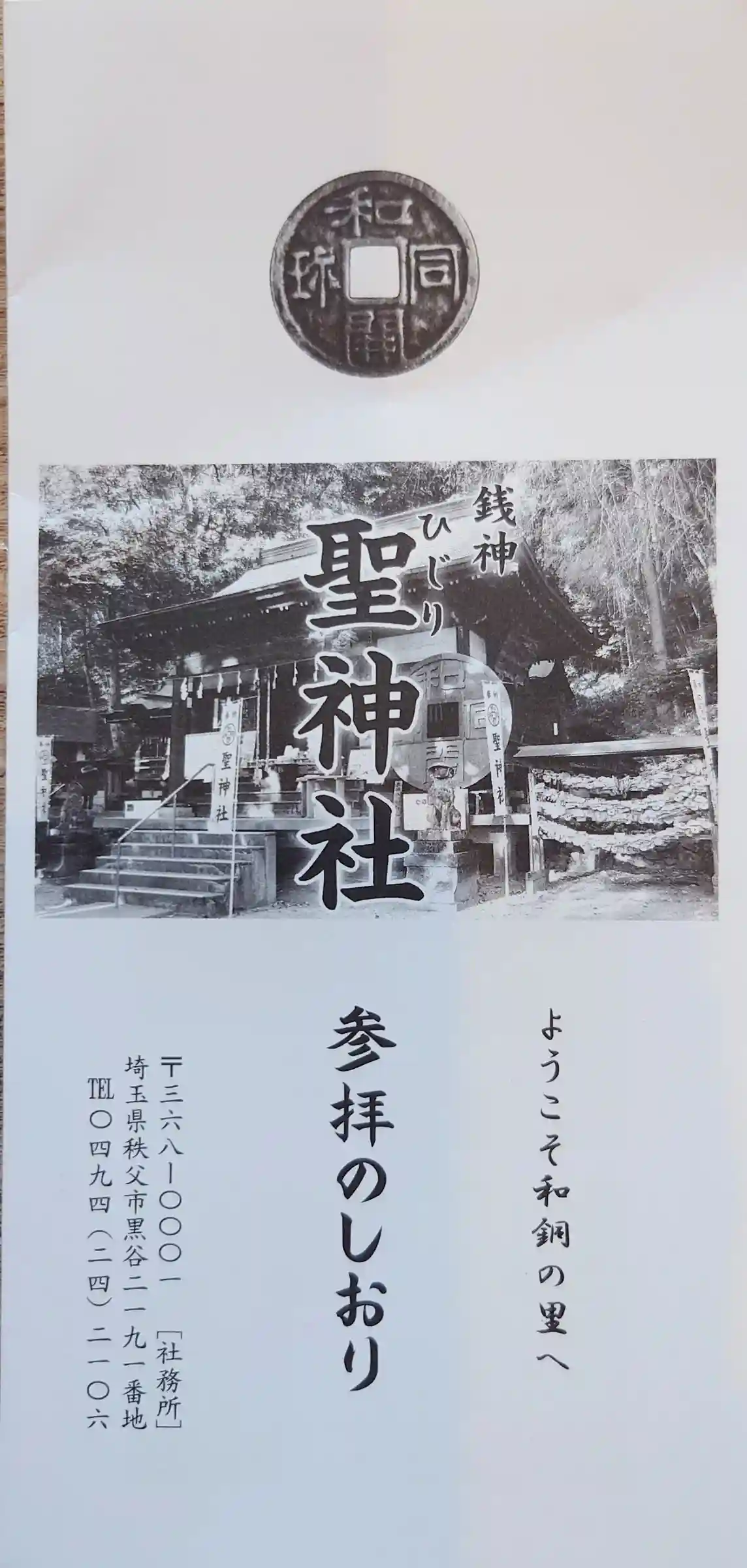 日本初の流通通貨【和同開珎】ゆかりの神社です。