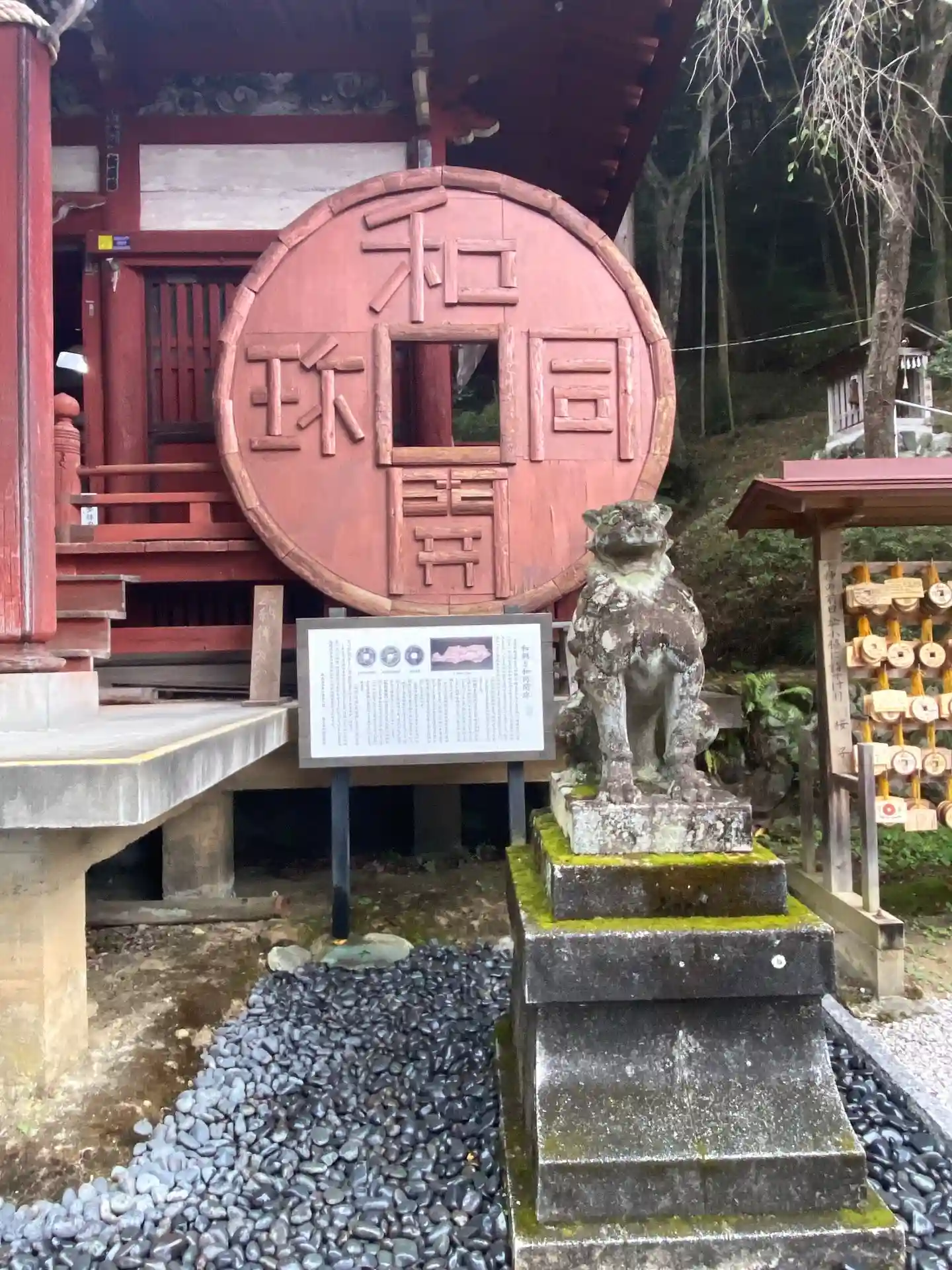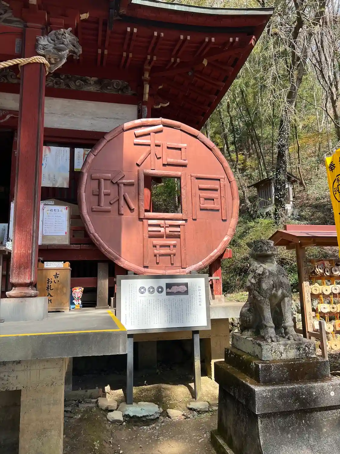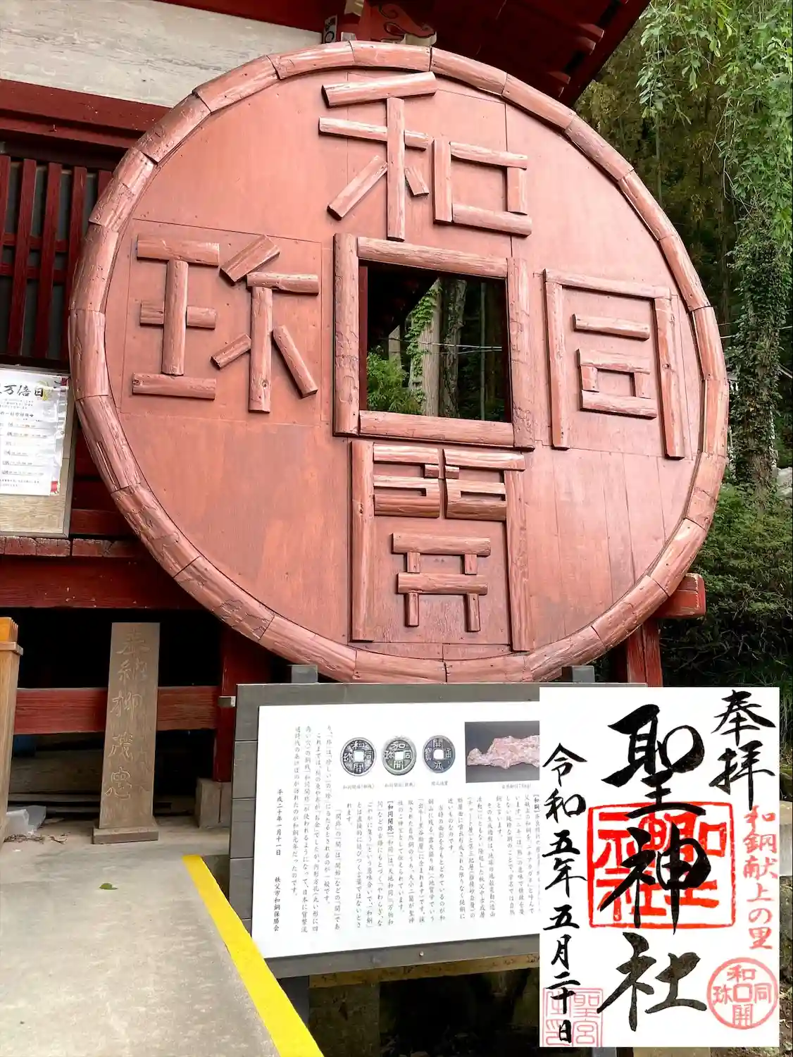 境内から少し歩くと大きな和同開珎モニュメントがあります(黄色い方は無関係です)
