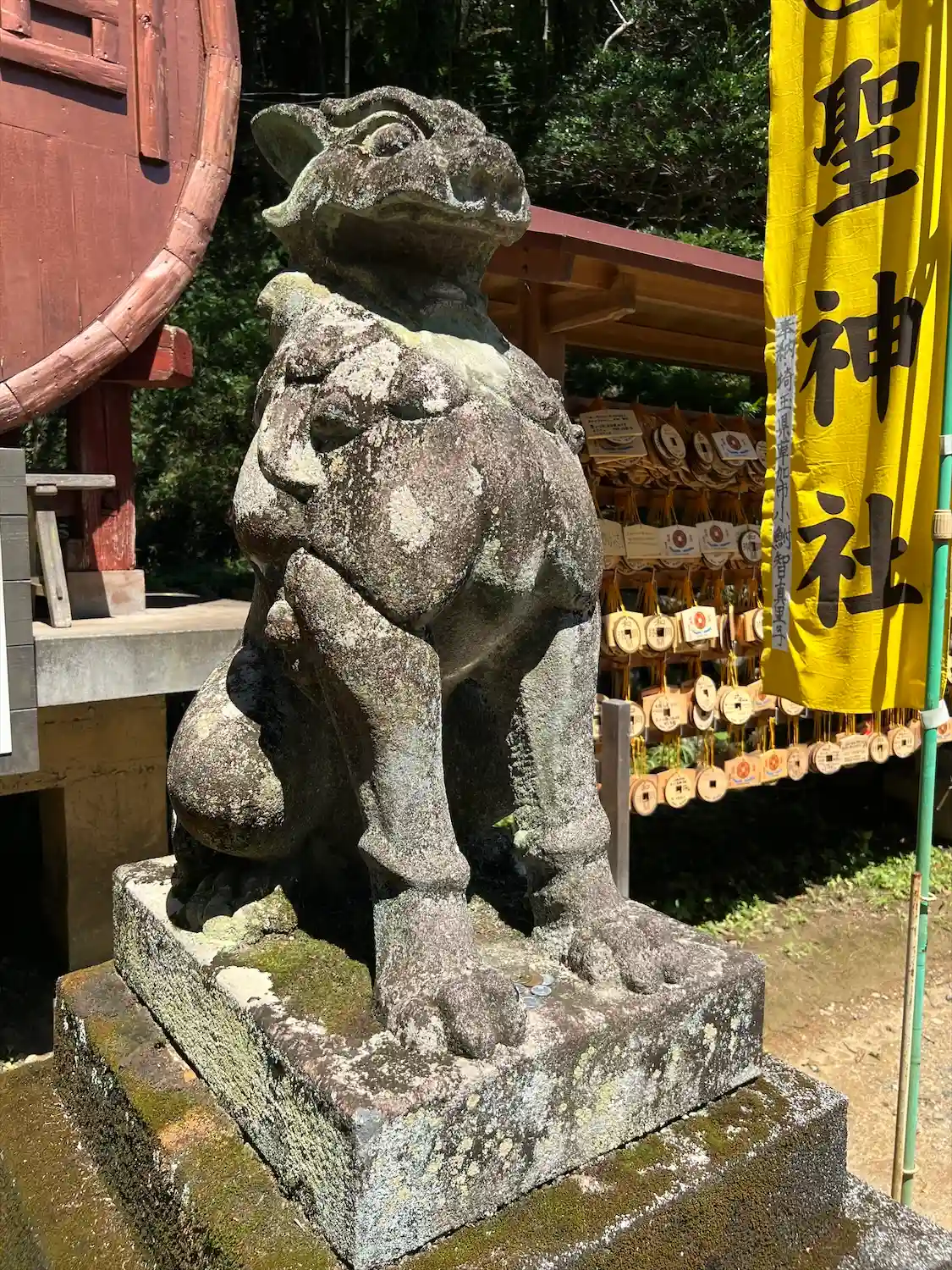 御朱印や御守り等は境内に並べられて基本すべて無人販売の様子。
