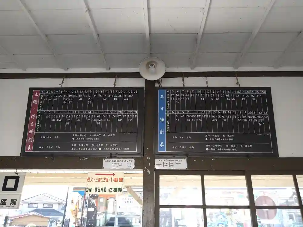 最寄りの和銅黒谷駅。赤い岩が銅と関係ありそうで気になります。
