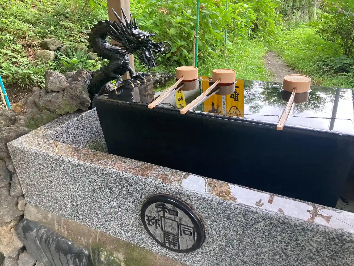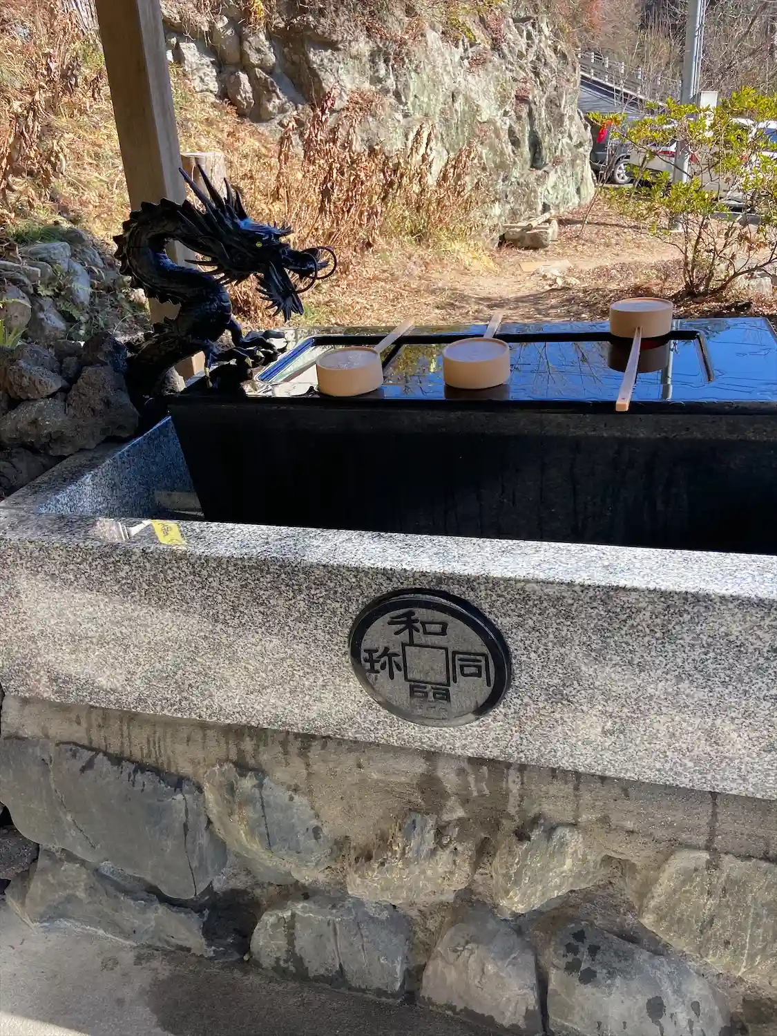 鳥居をくぐって、参道右側にある<手水舎>。