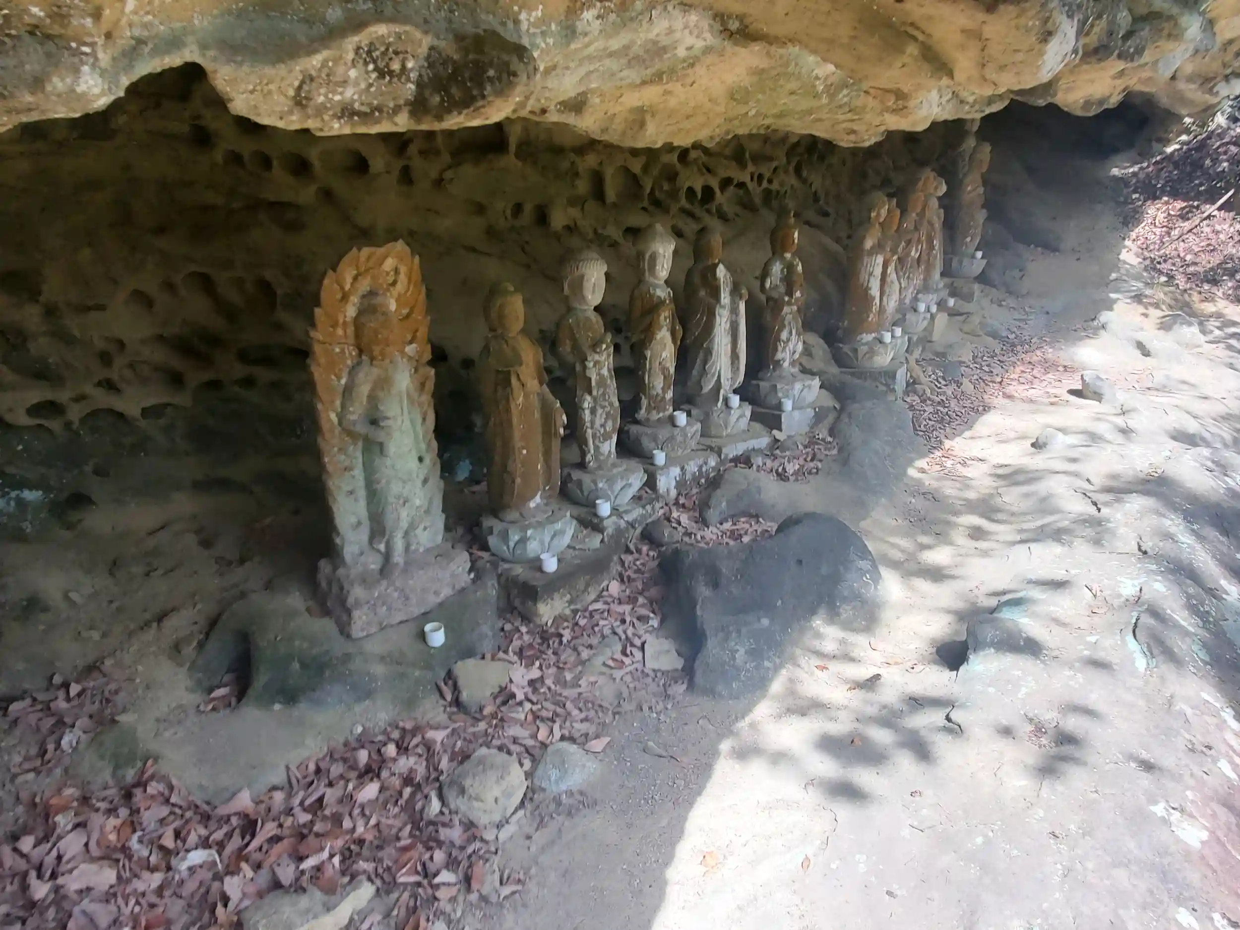 古い石仏を興味深く眺めたり