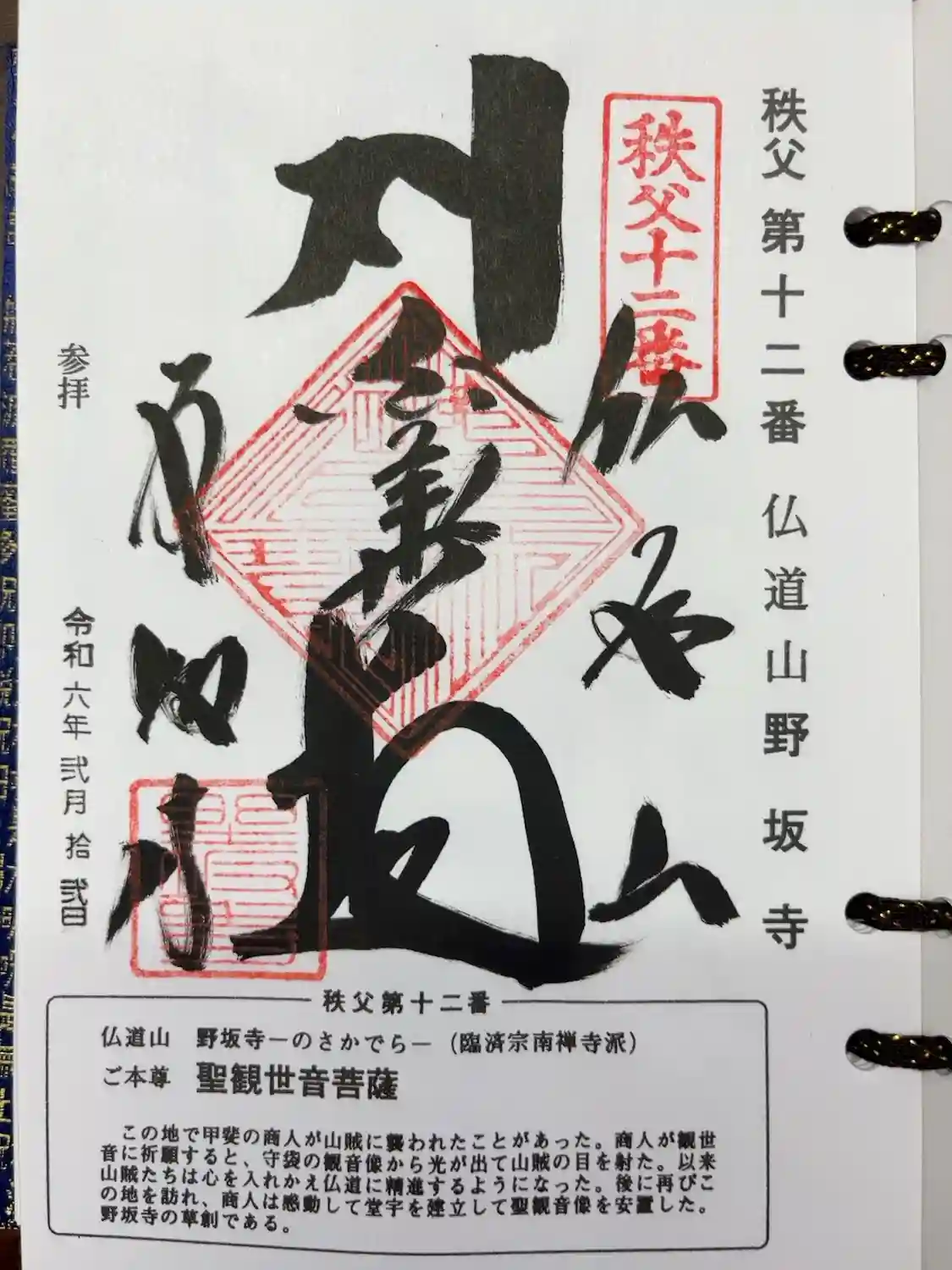野坂寺の御朱印・御朱印帳